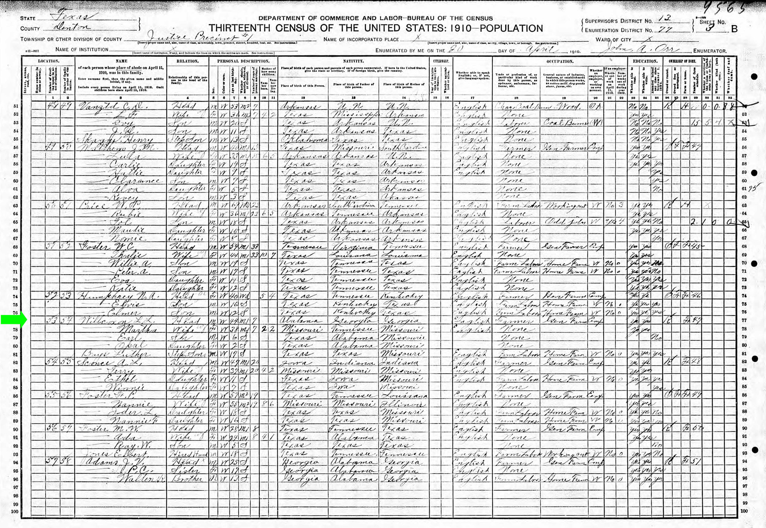April 1910 in Denton Co., Texas