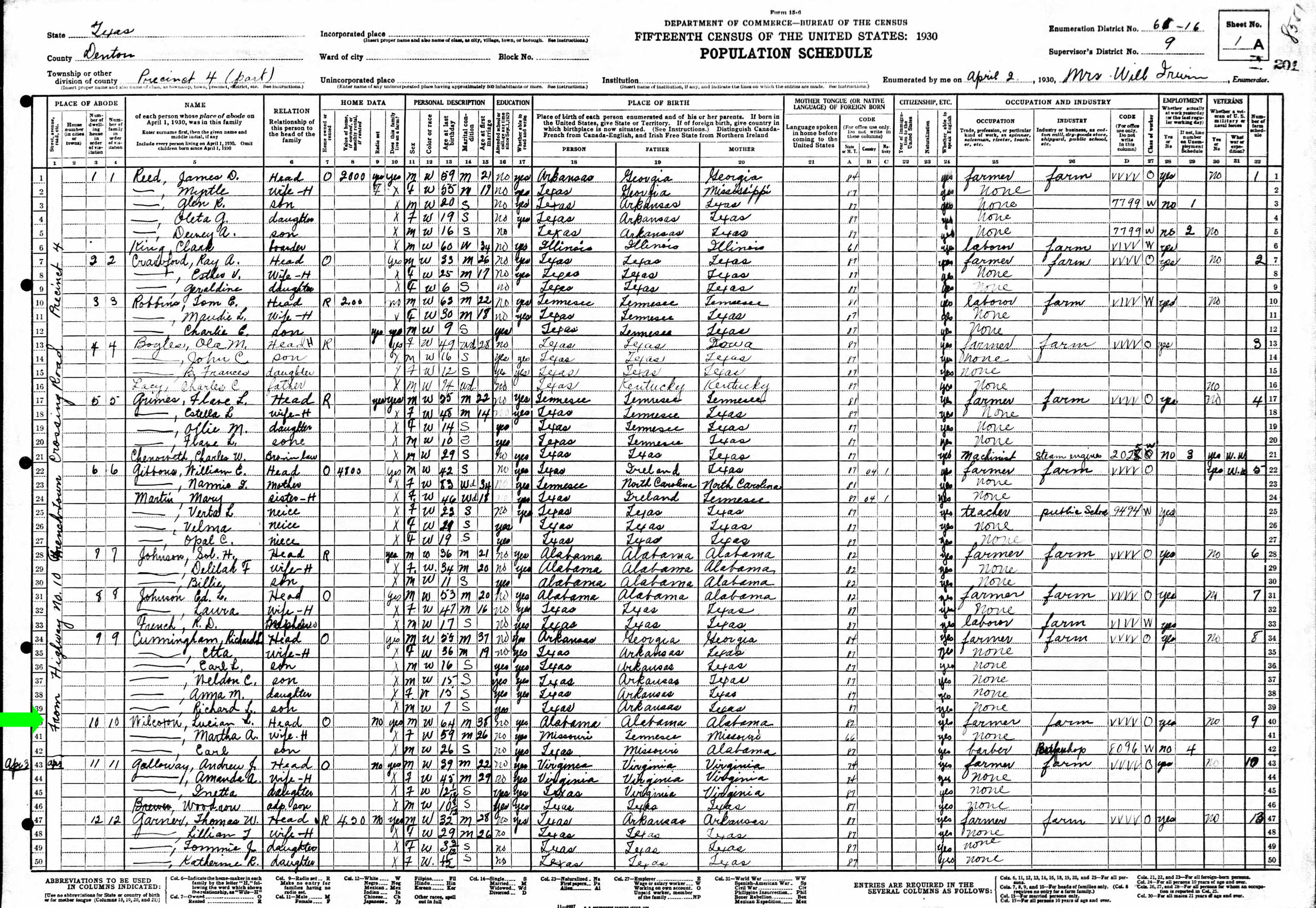 April 1930 in Denton Co., Texas