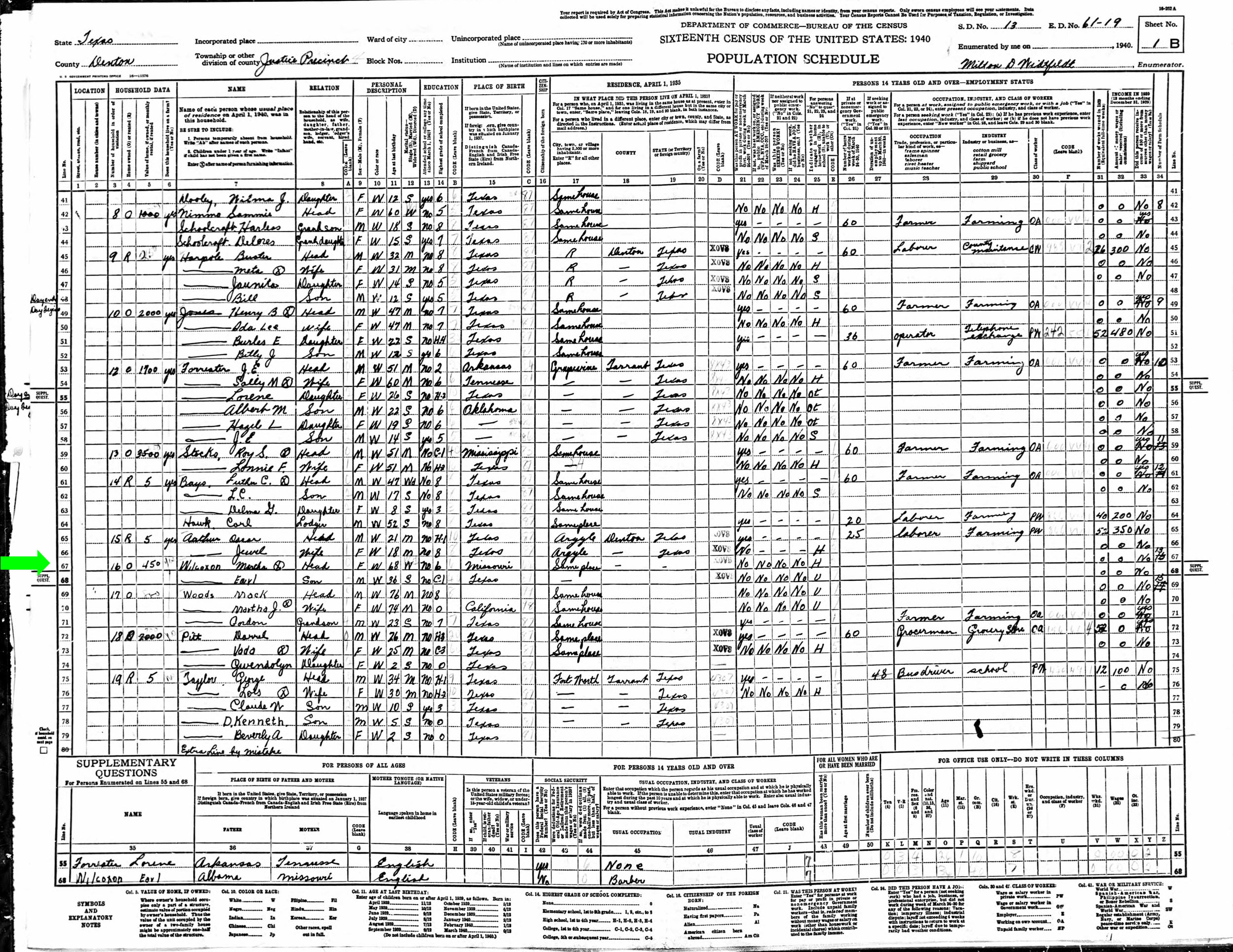 1940 in Denton Co., Texas; Same house as April 1935