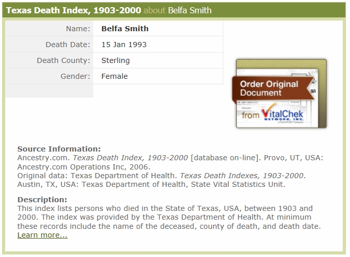 January 1993 in Memphis, Texas; Fairview Cemetery (North Section)
