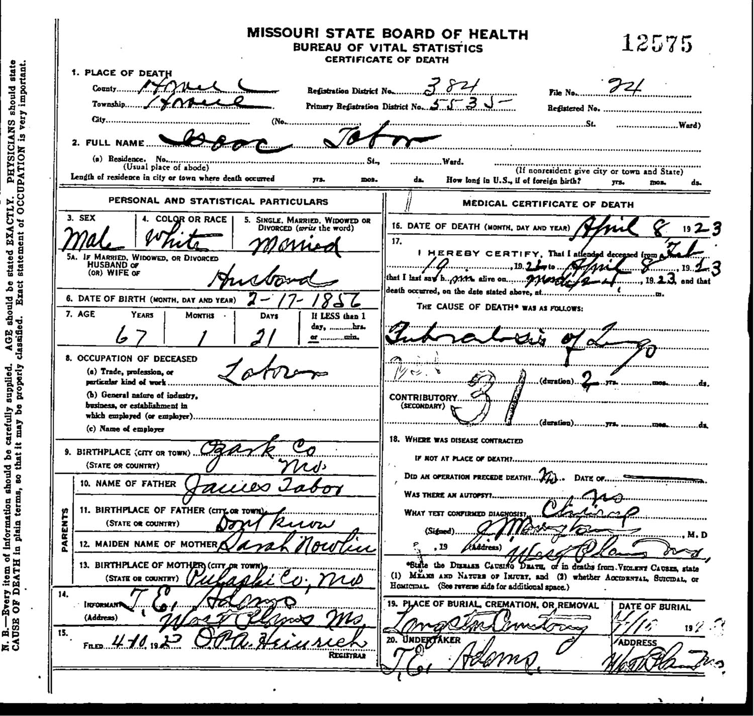 July 1870 in Tavern, Missouri