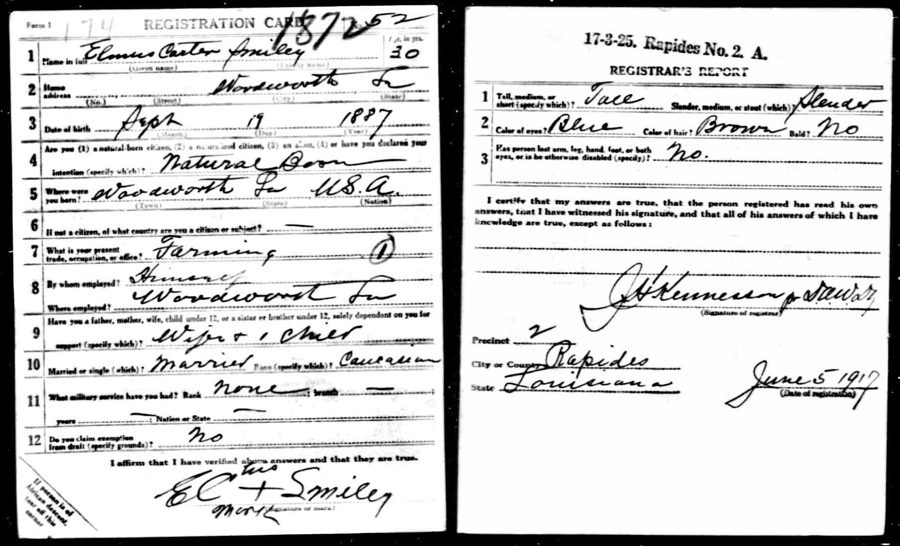 June 1917 in Woodworth, Louisiana