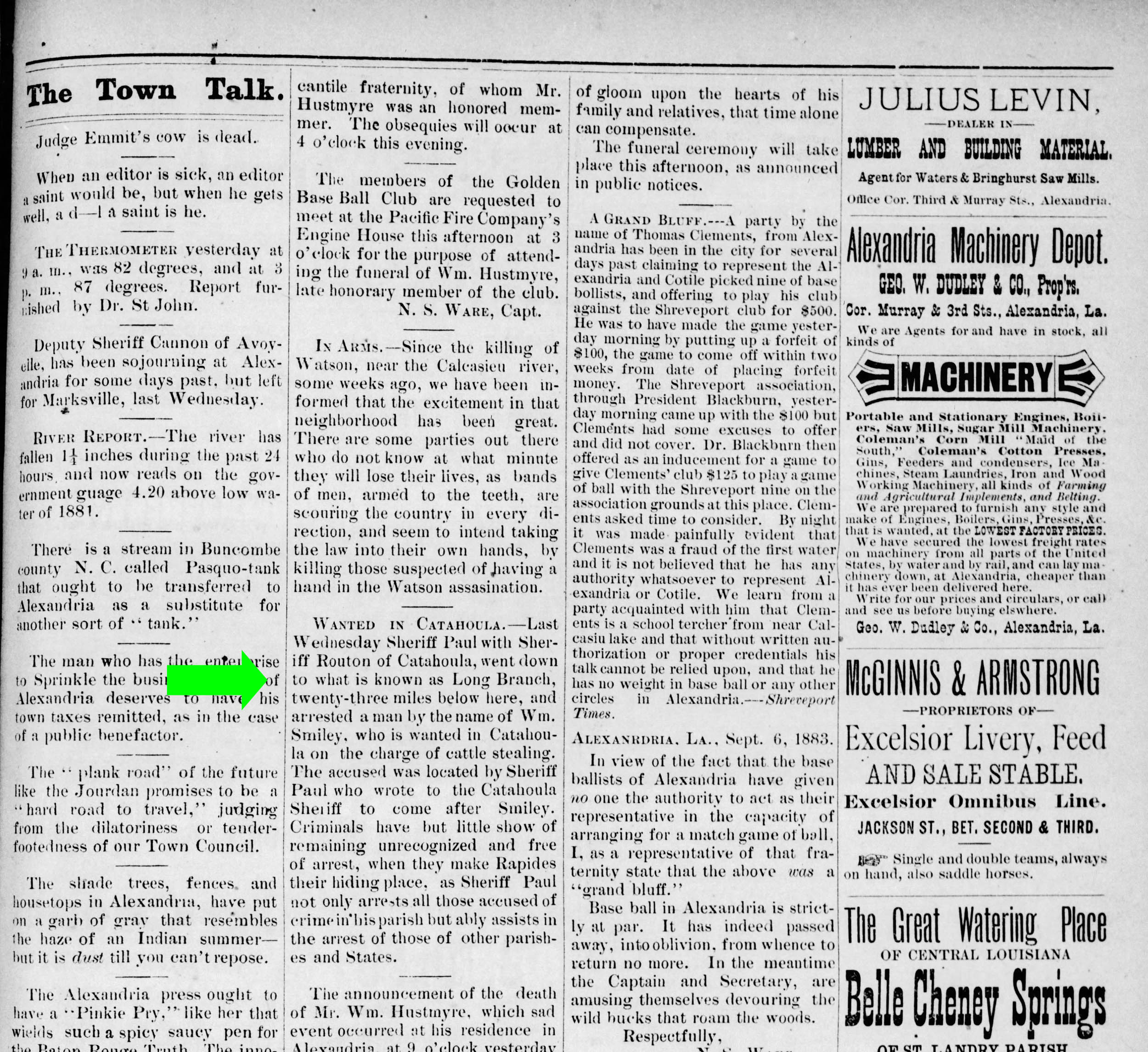 Sepember 1883 in Rapides Co., Louisiana; Cattle Stealing