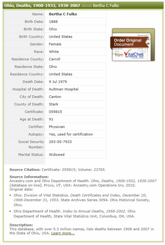 1979 in Waynesburg, Ohio; Sandy Valley Cemetery - need to verify - findagrave