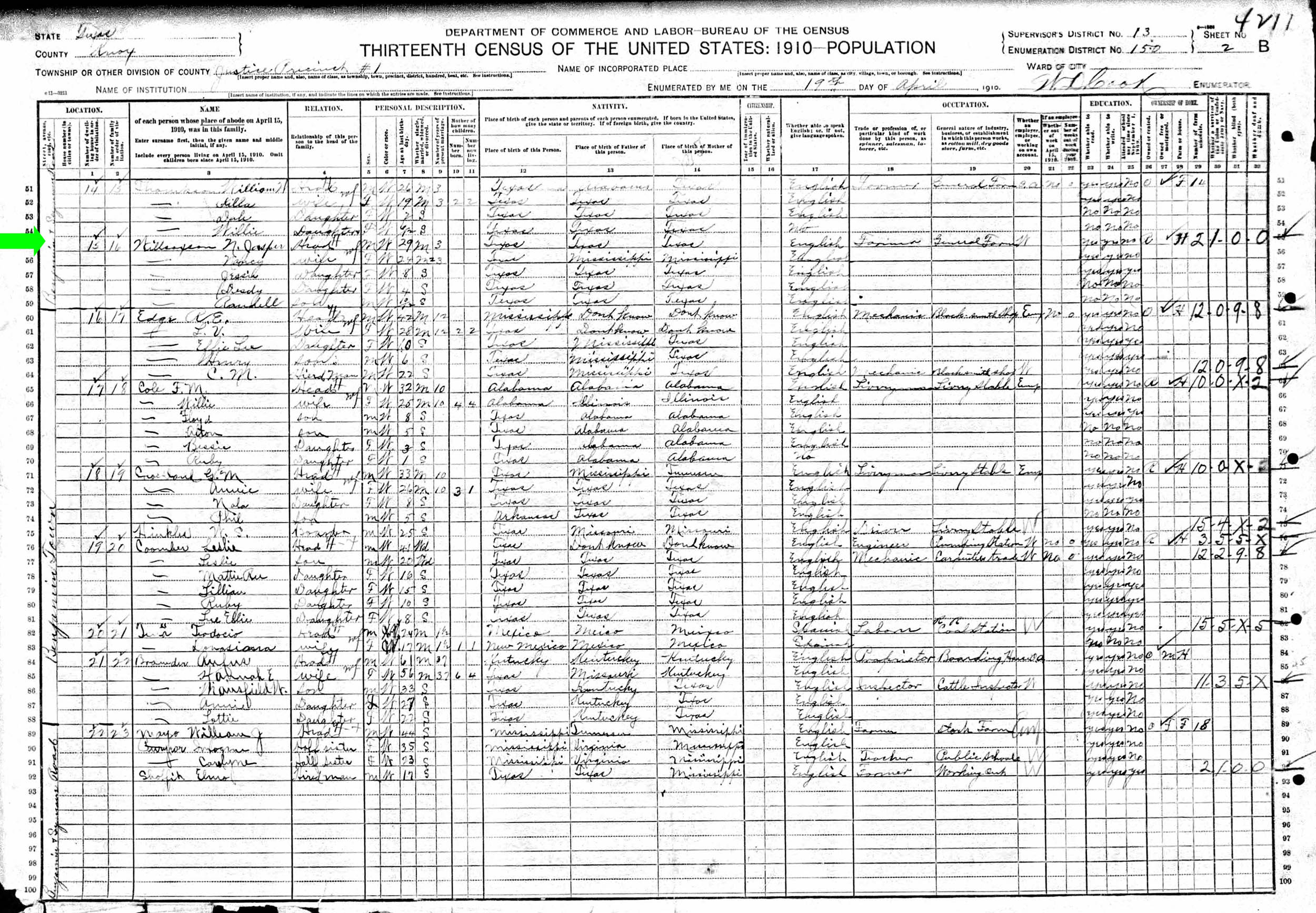April 1910 in Knox Co., Texas