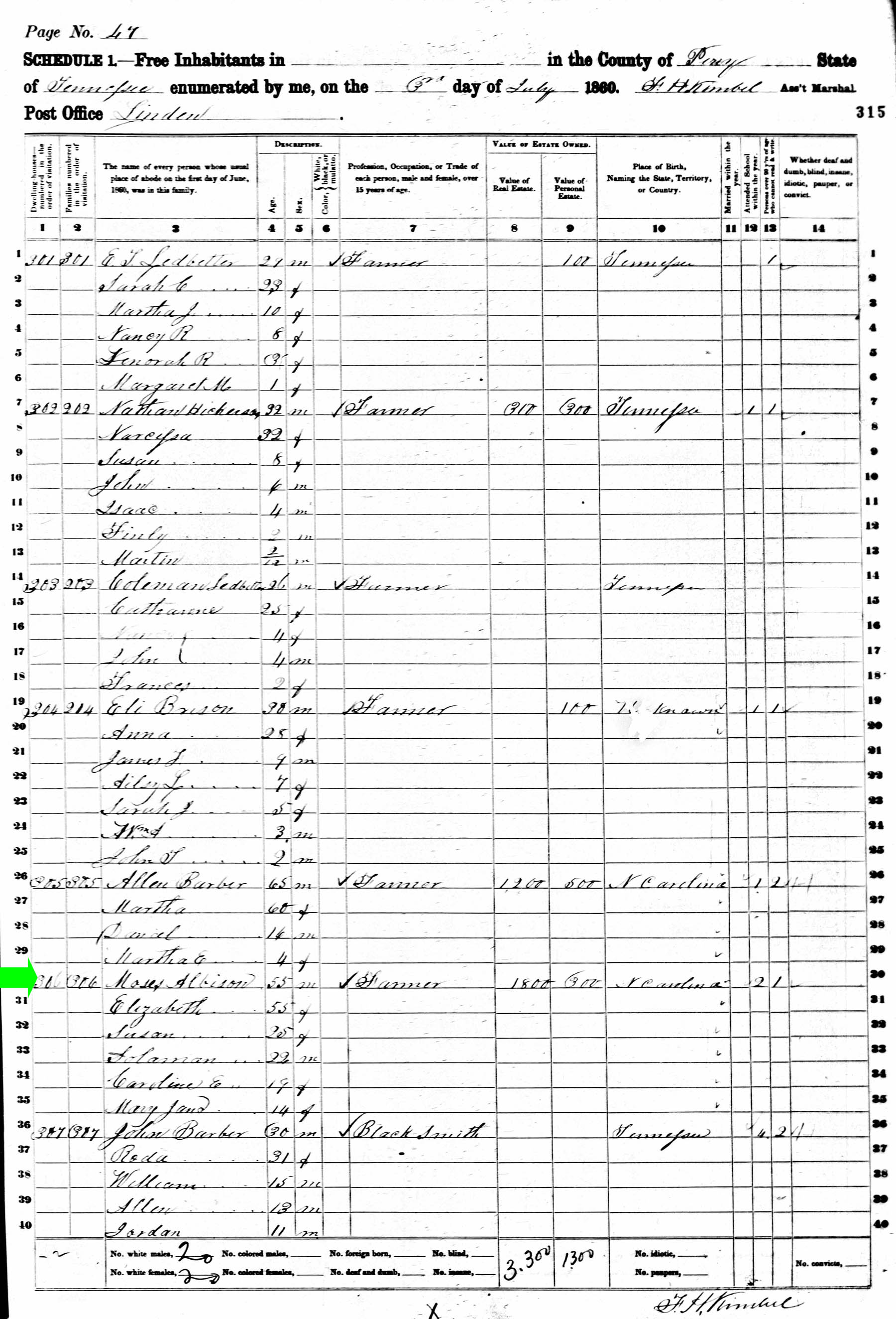 July 1860 in Perry Co., Tennessee