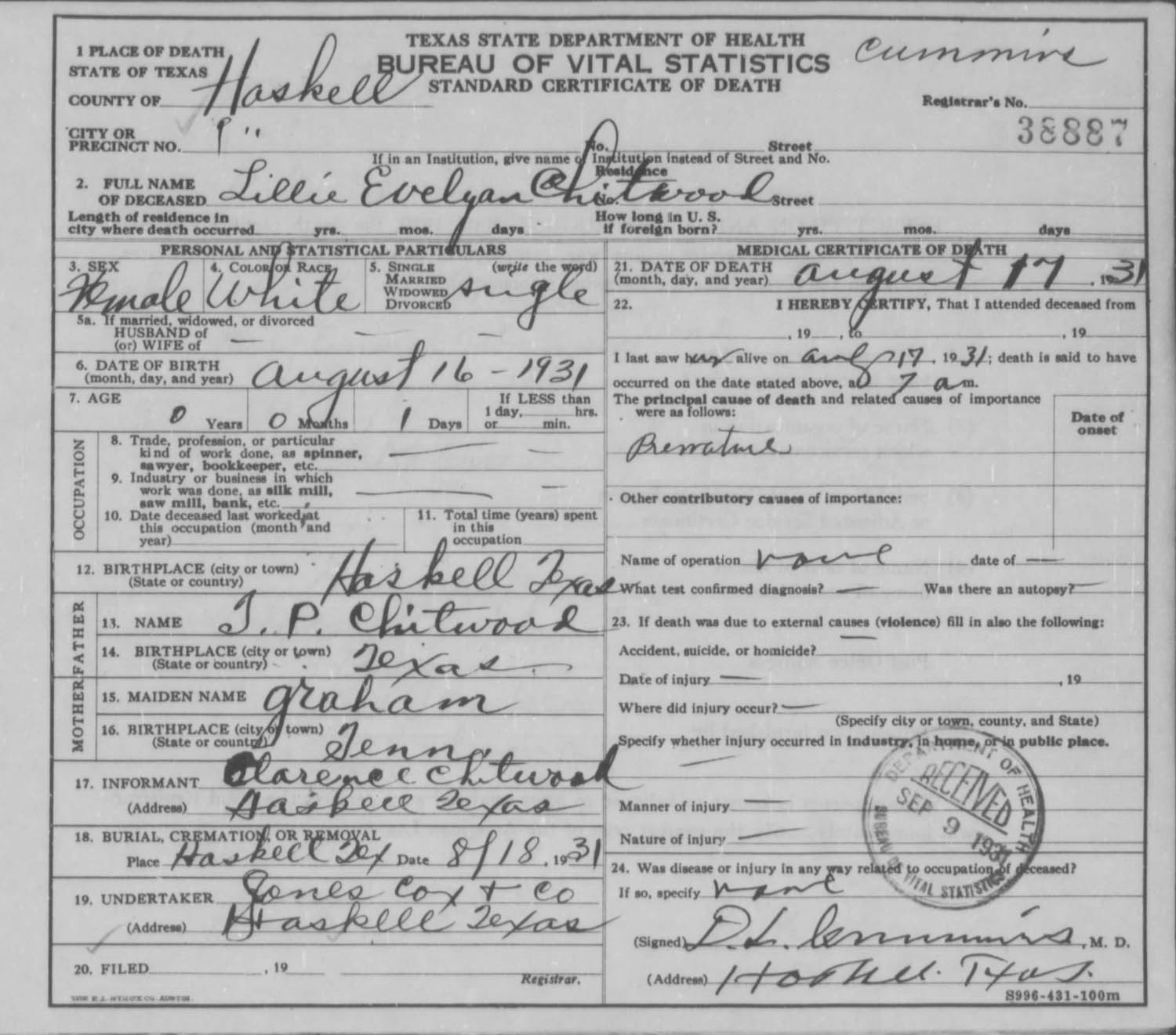 1947 in Haskell, Texas; Willow (Haskell) Cemetery