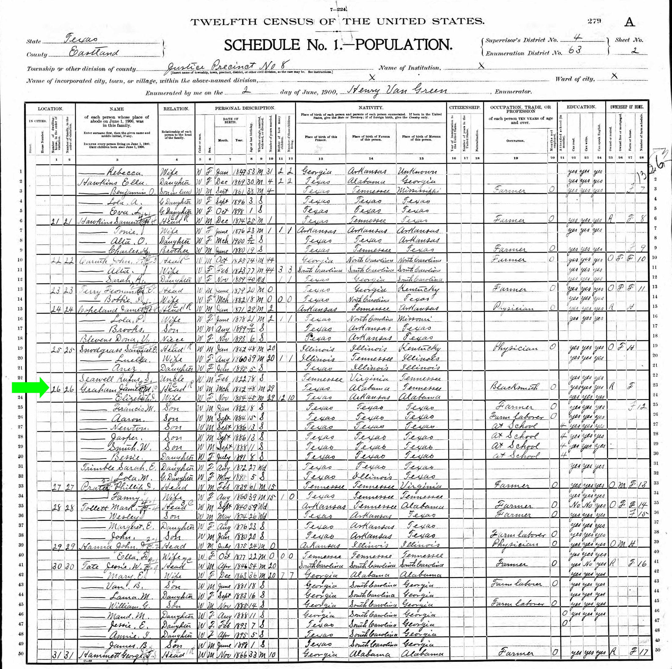 June 1900 in Eastland Co., Texas