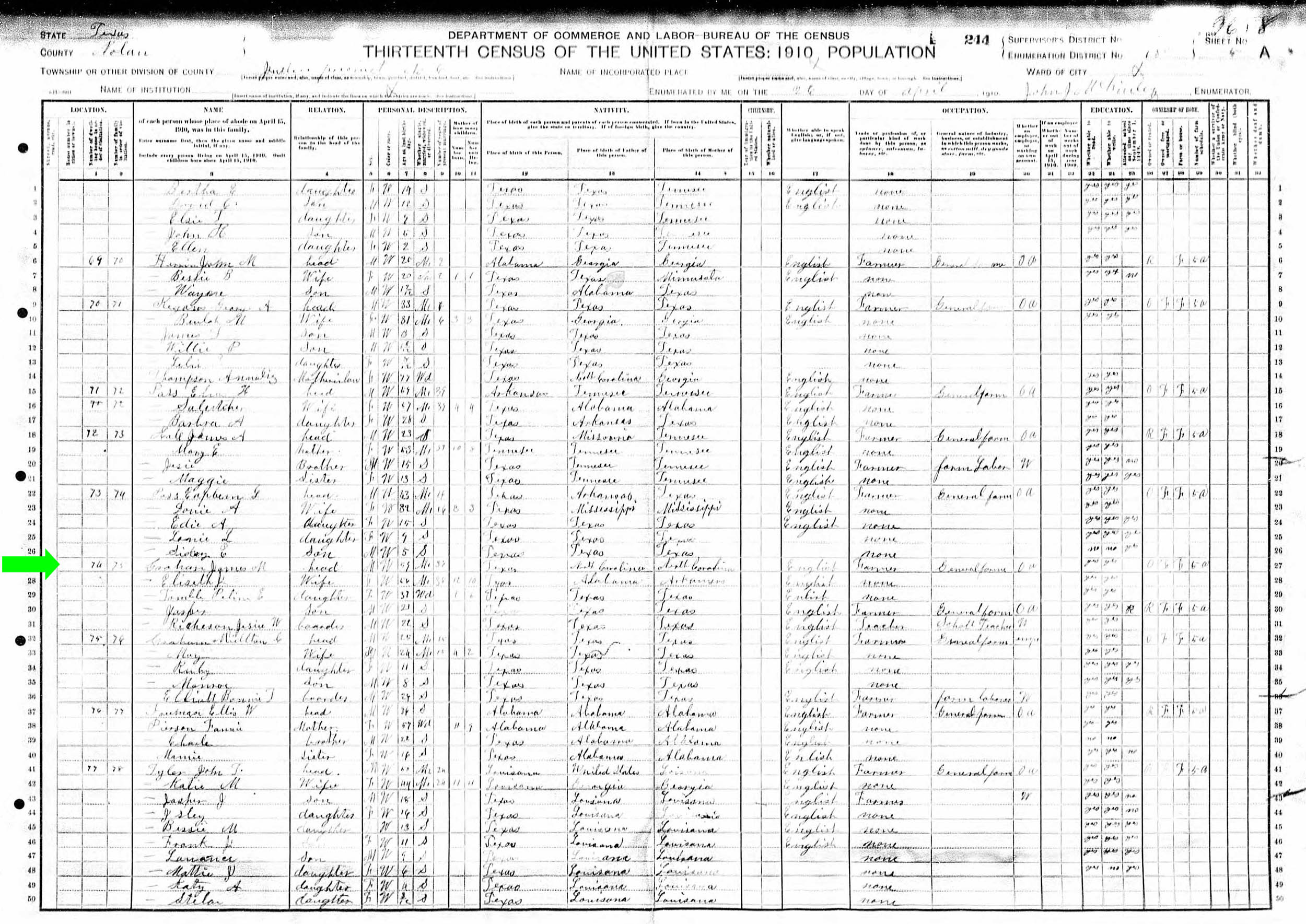 April 1910 in Nolan Co., Texas