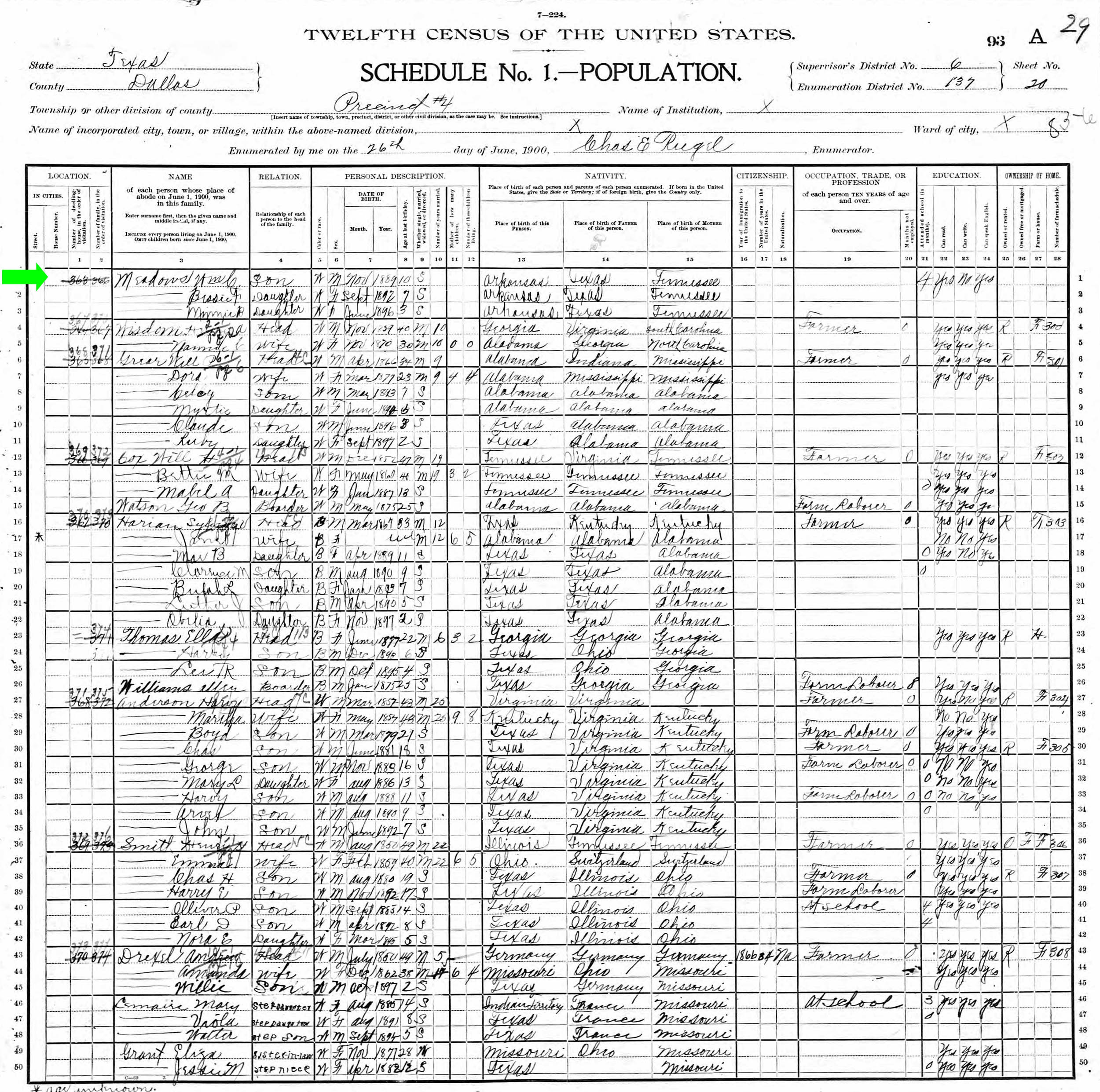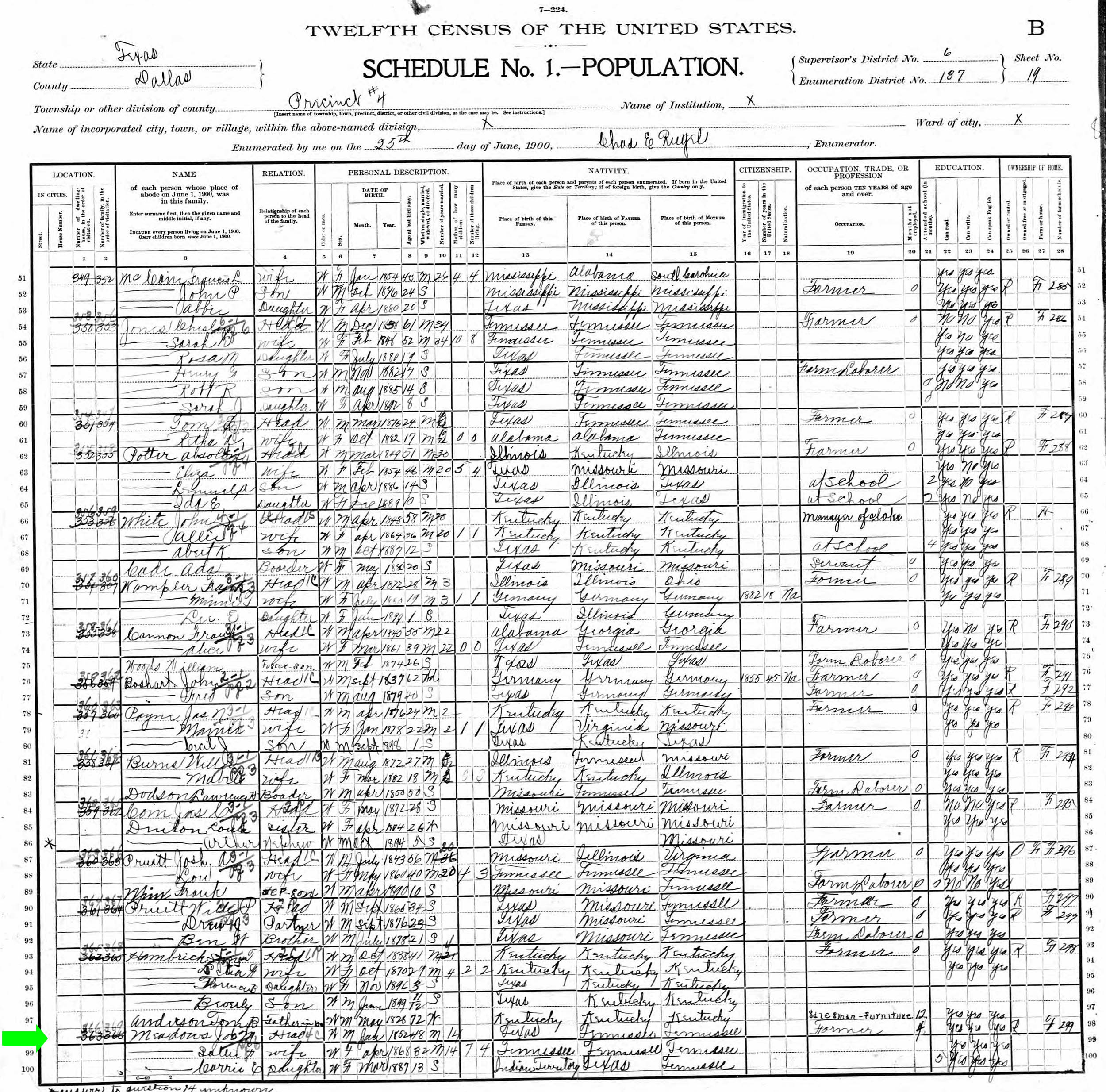 June 1900 in Dallas Co., Texas