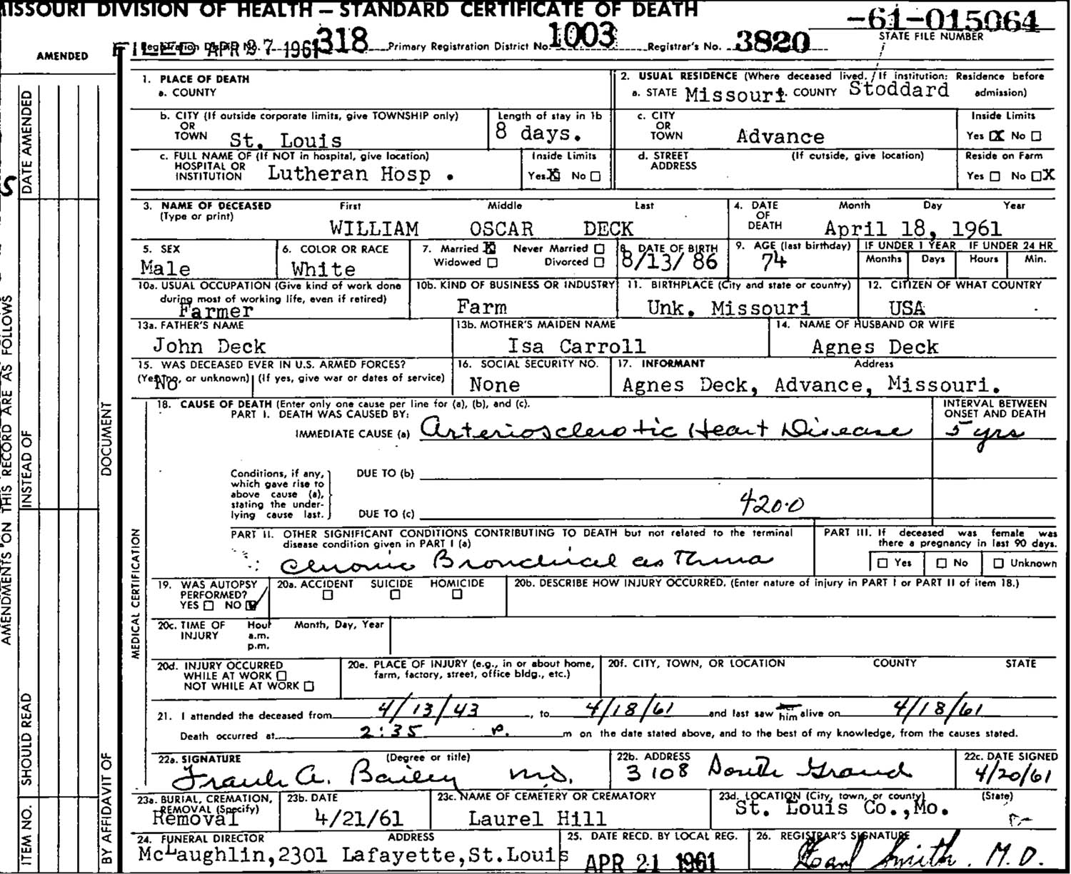 April 1961 in Pagedale, Missouri; Laurel Hill Memorial Gardens