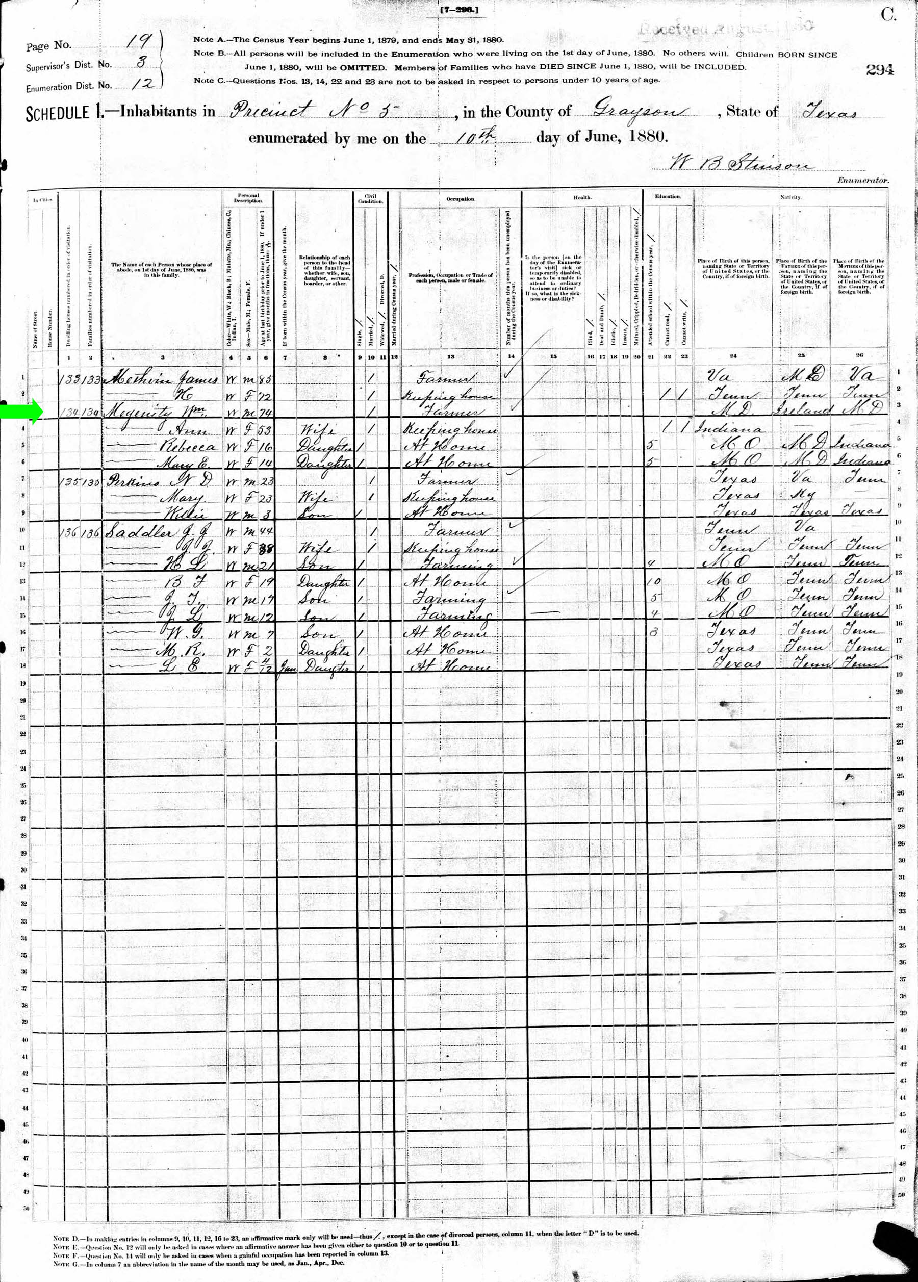 June 1880 in Grayson Co., Texas