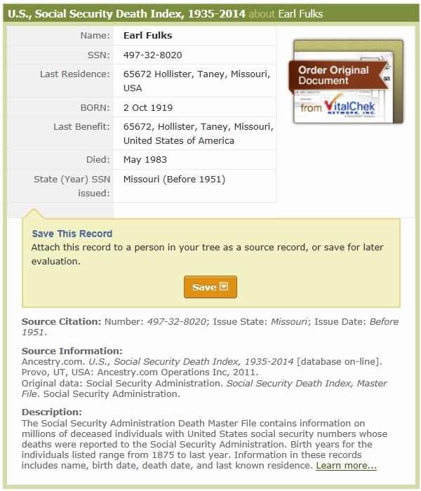 May 1983 in Palace, Missouri; Need to verify - findagrave.com