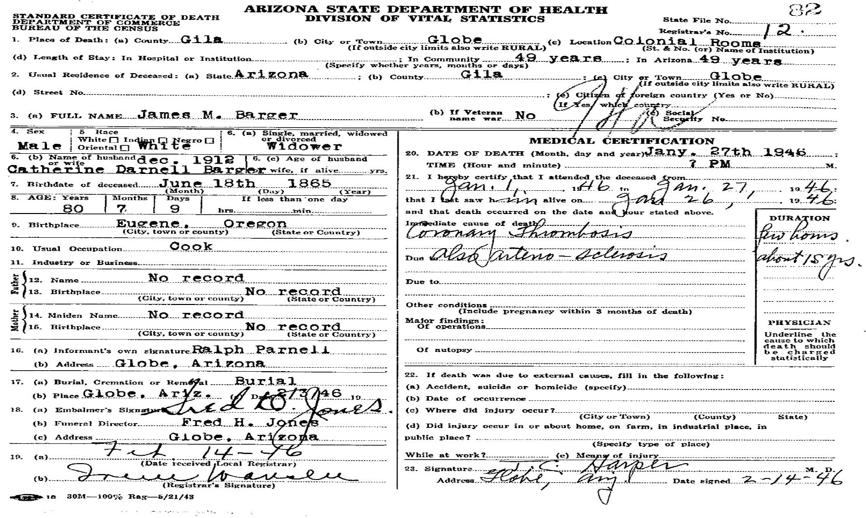 January 27, 1946 in Globe, Arizona