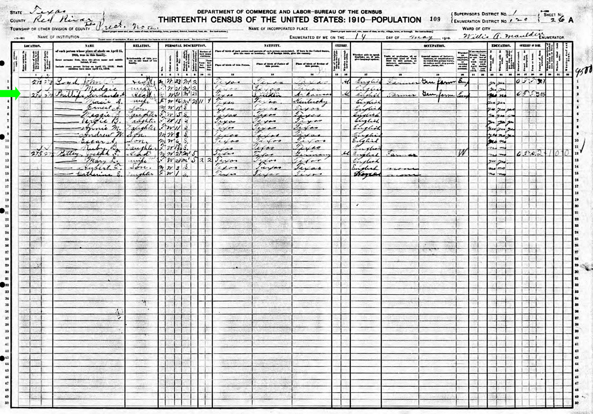 May 1910 in Red River Co., Texas