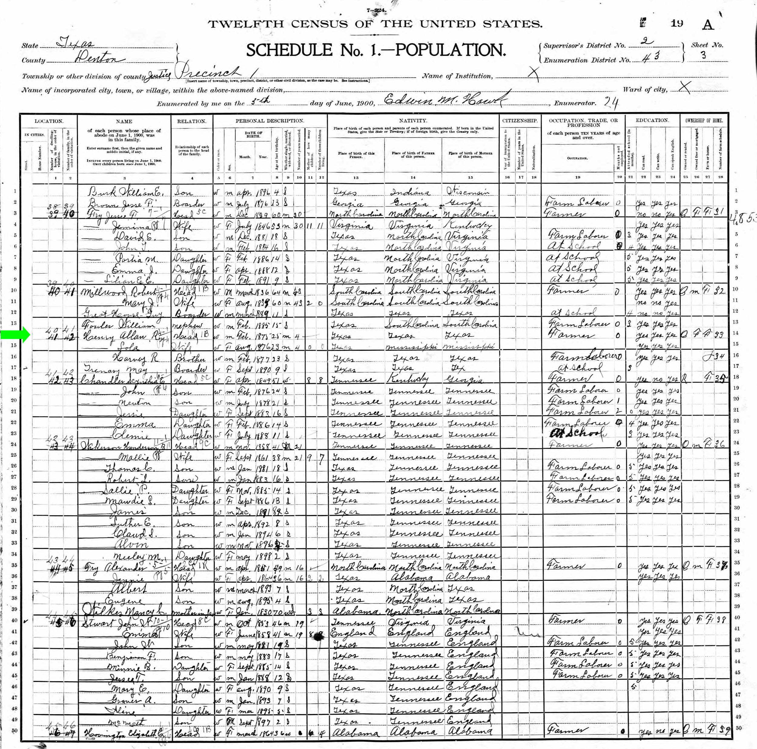 June 1900 in Denton Co., Texas