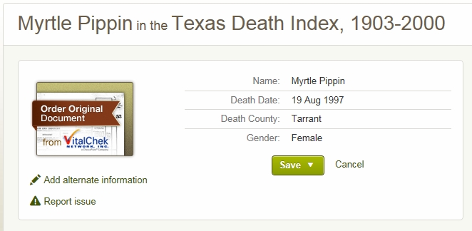 August 1997 in Denton, Texas; Roselawn Memorial Park