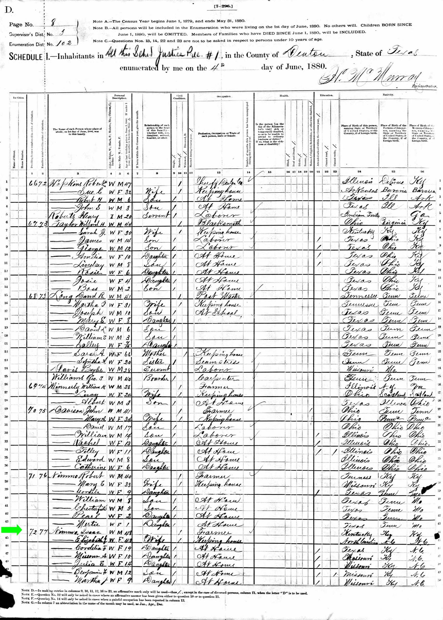 June 1880 in Denton Co., Texas