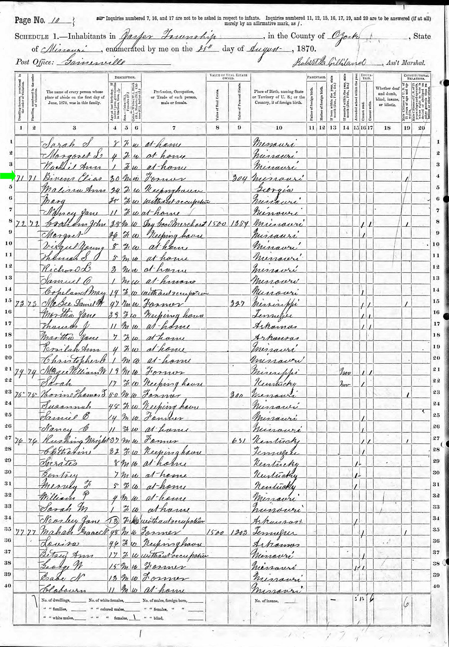 August 1870 in Ozark Co., Missouri