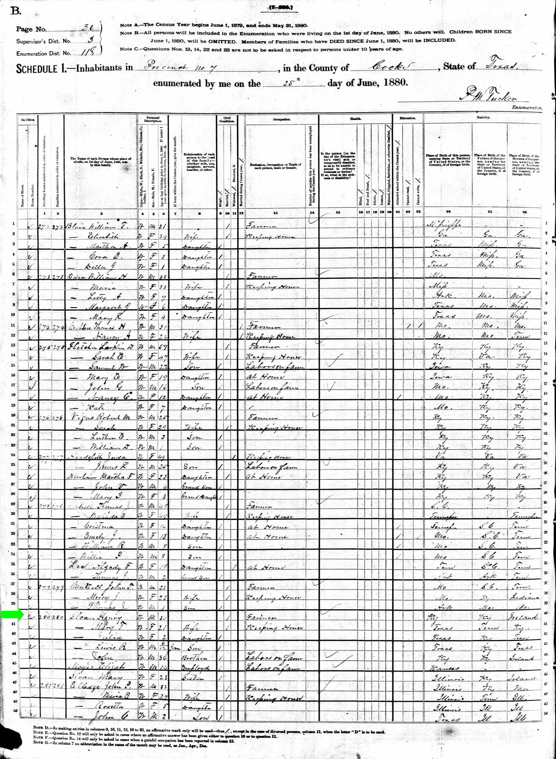June 1880 in Cooke Co., Texas