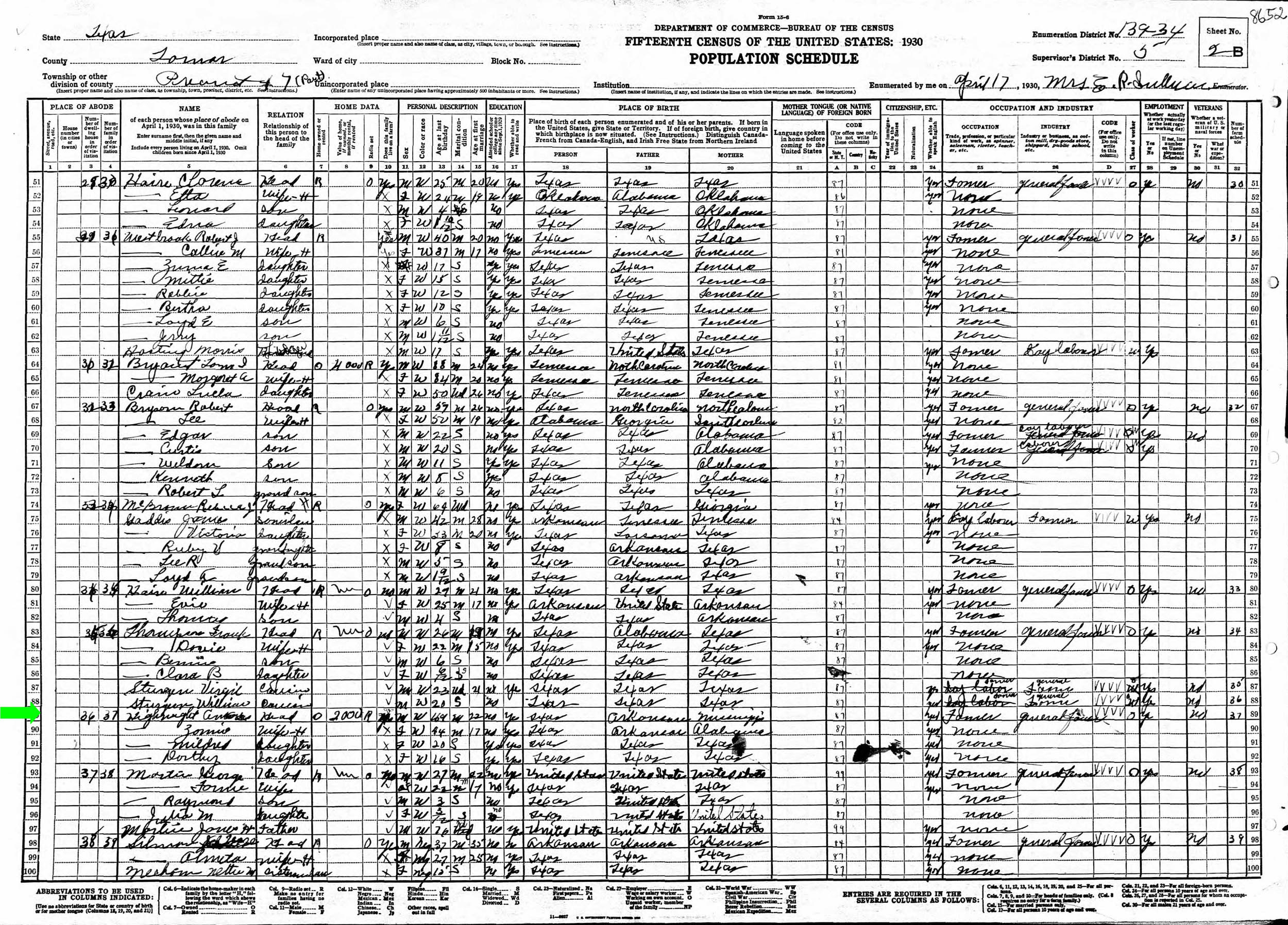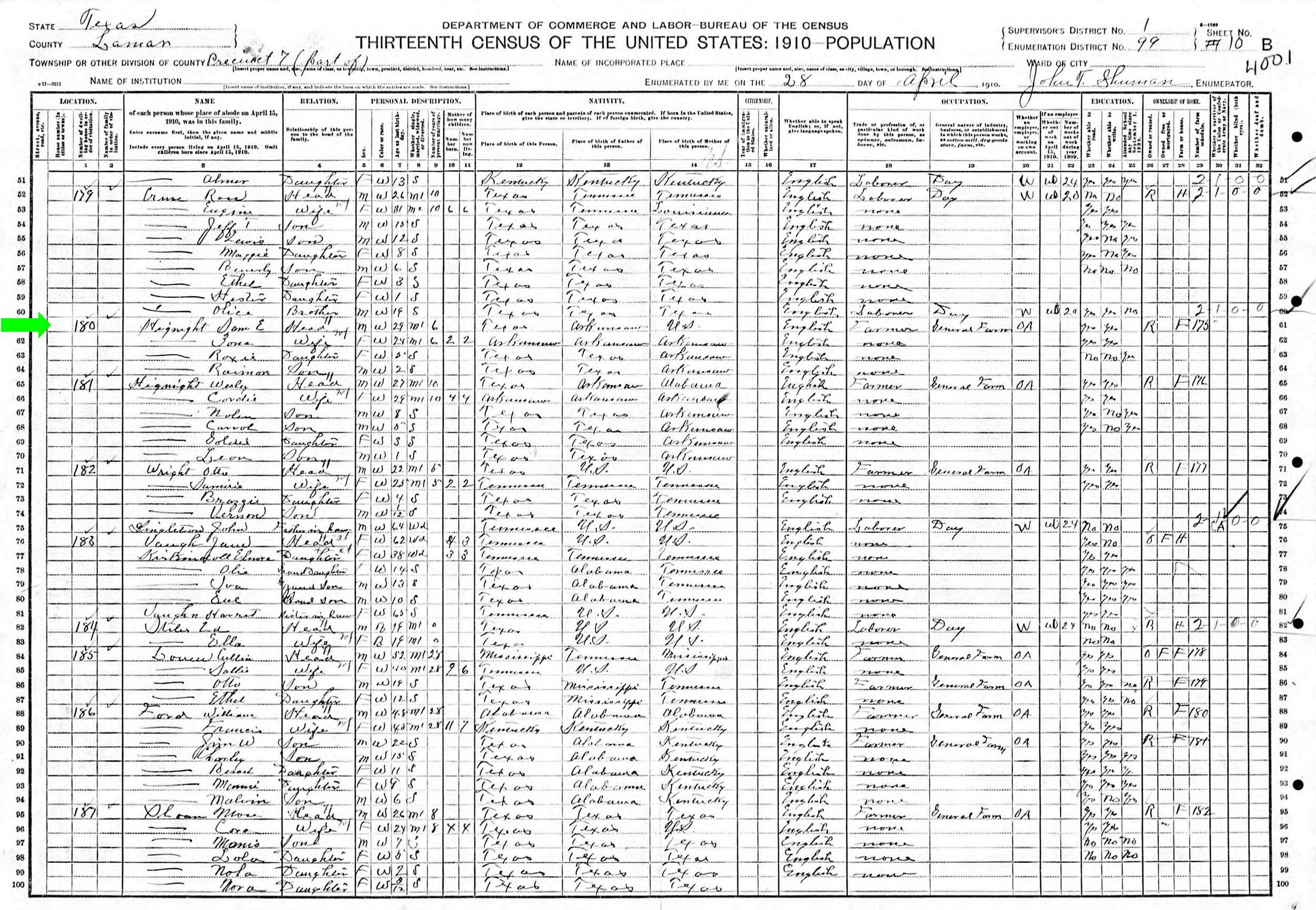 April 1910 in Lamar Co., Texas