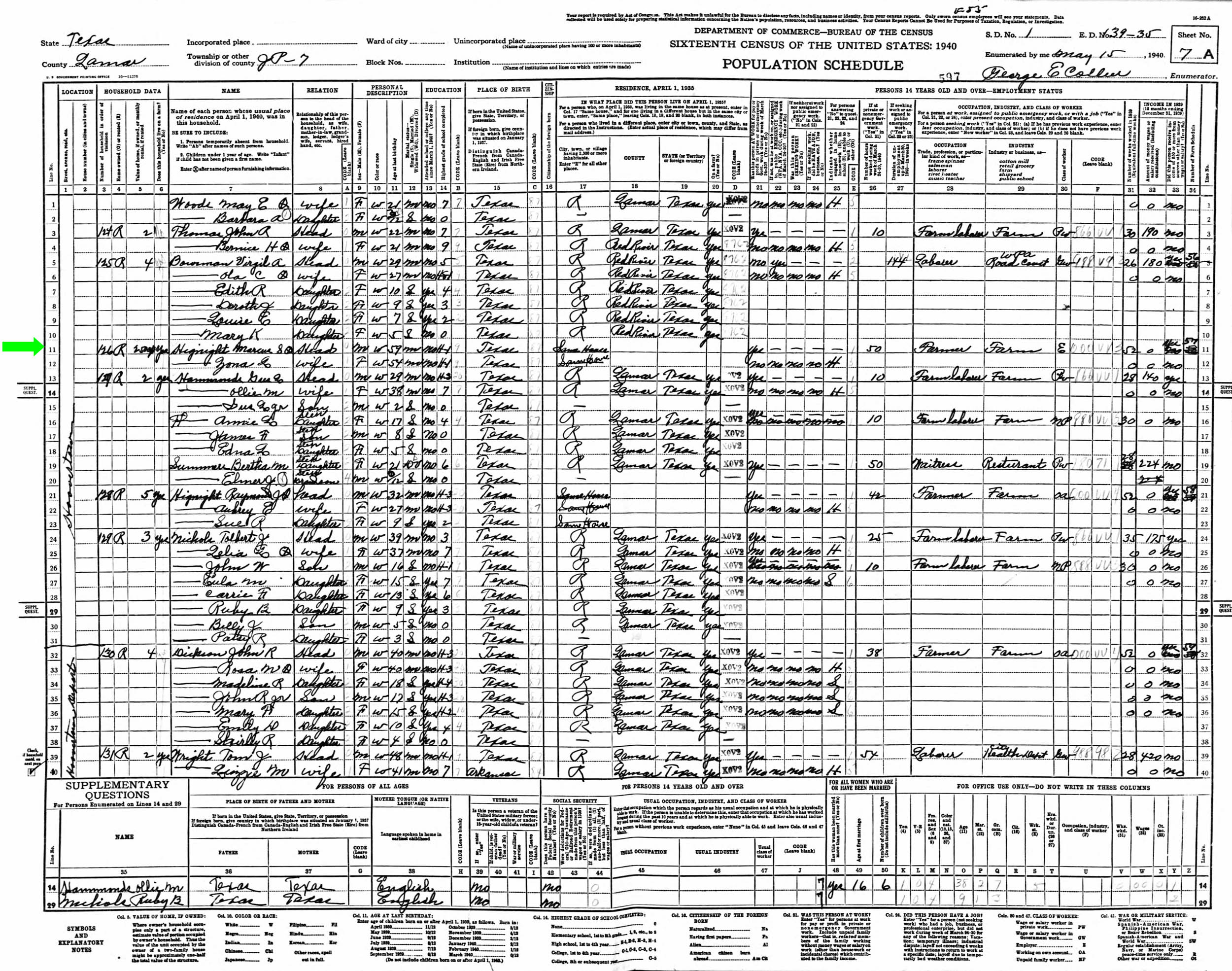 May 1940 in Lamar Co., Texas; Same house as April 1935