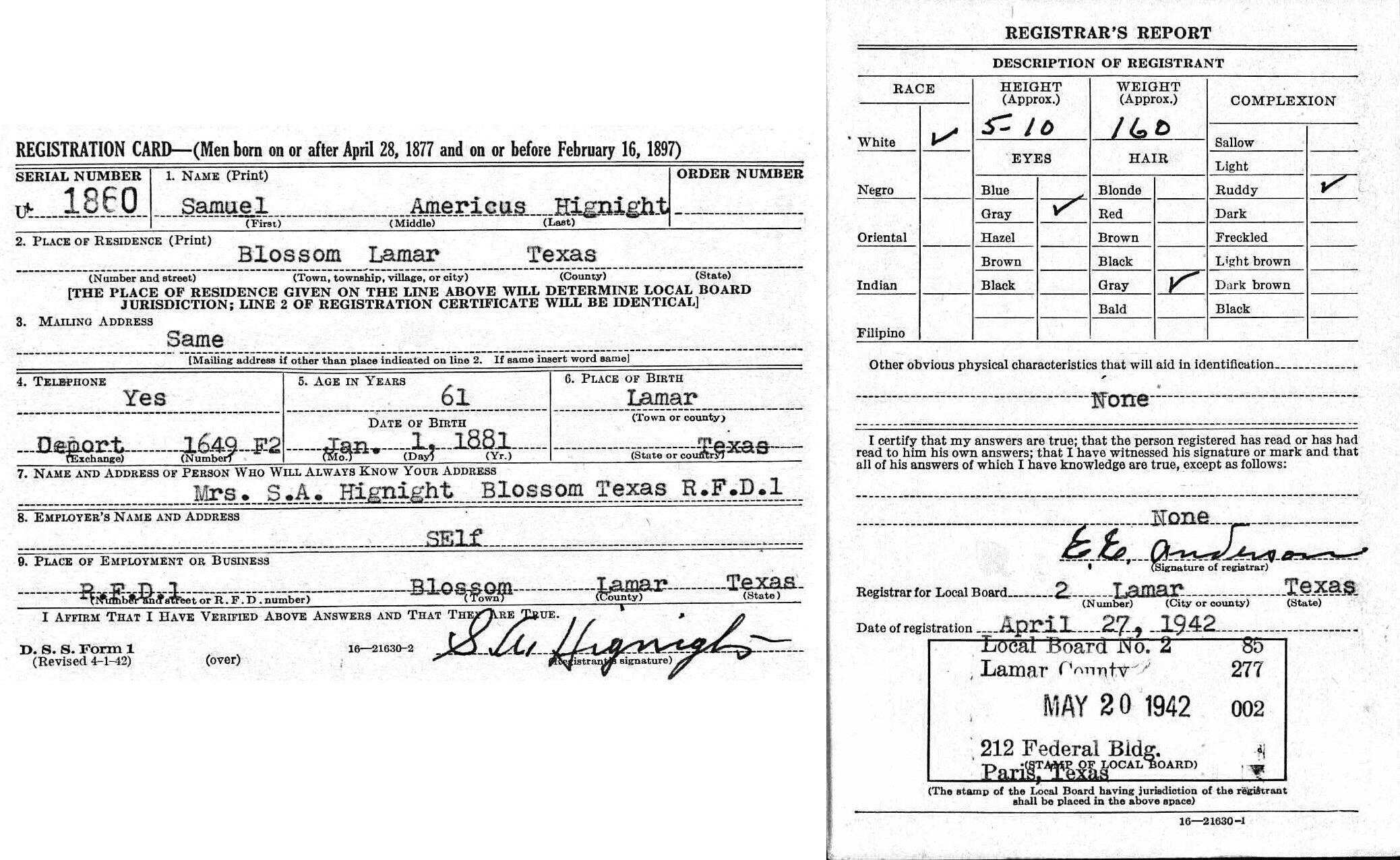 Samuel Americus Hignight (1881 - 1955)