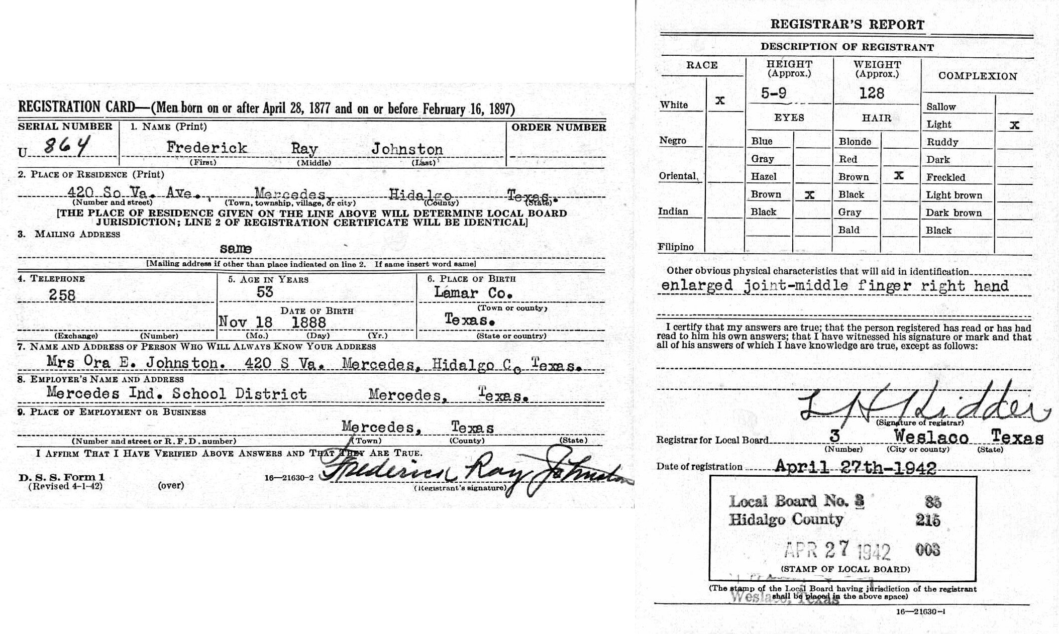 1942 in Mercedes, Texas; 420 So Va. Ave