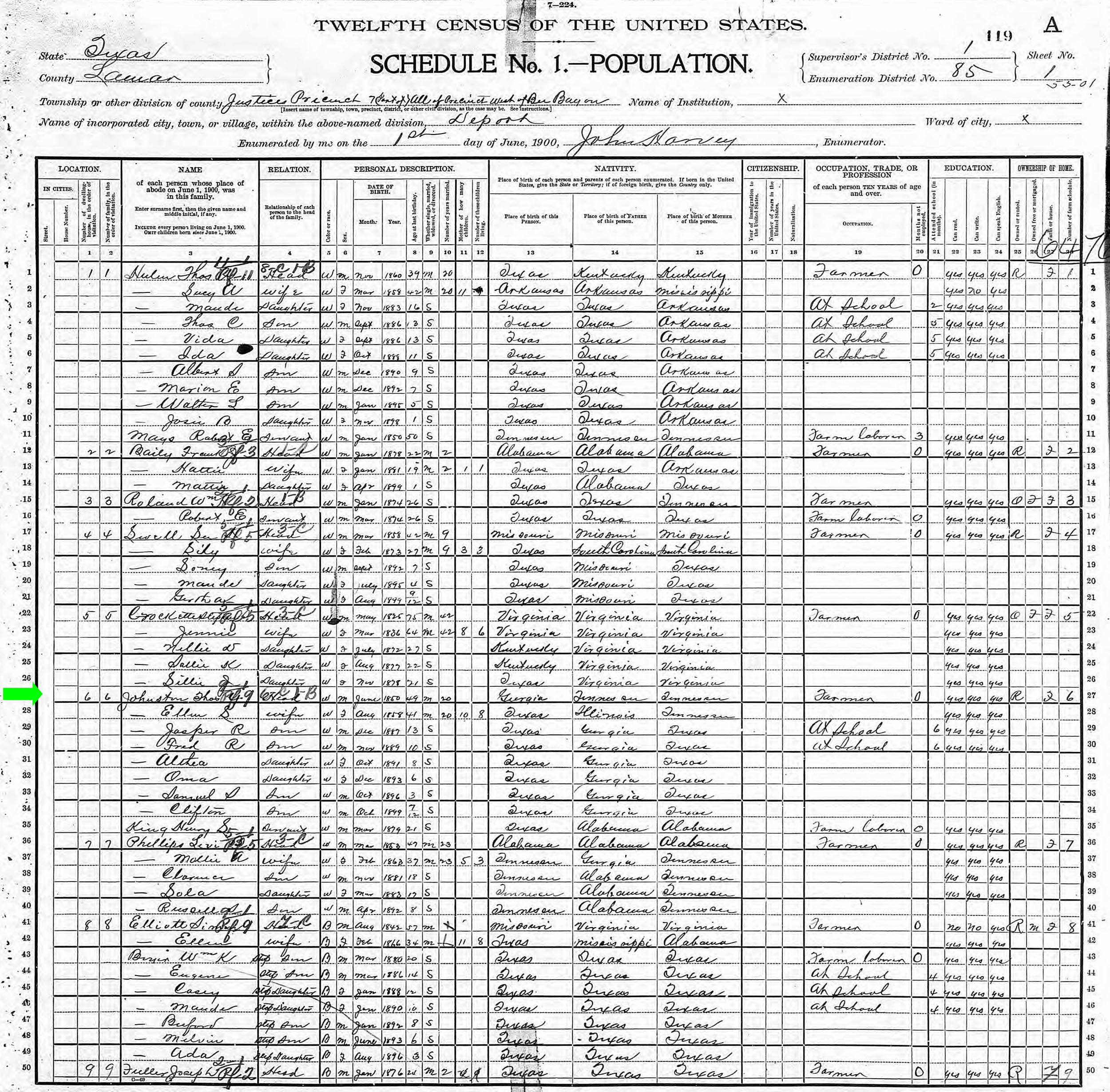 June 1900 in Lamar Co., Texas