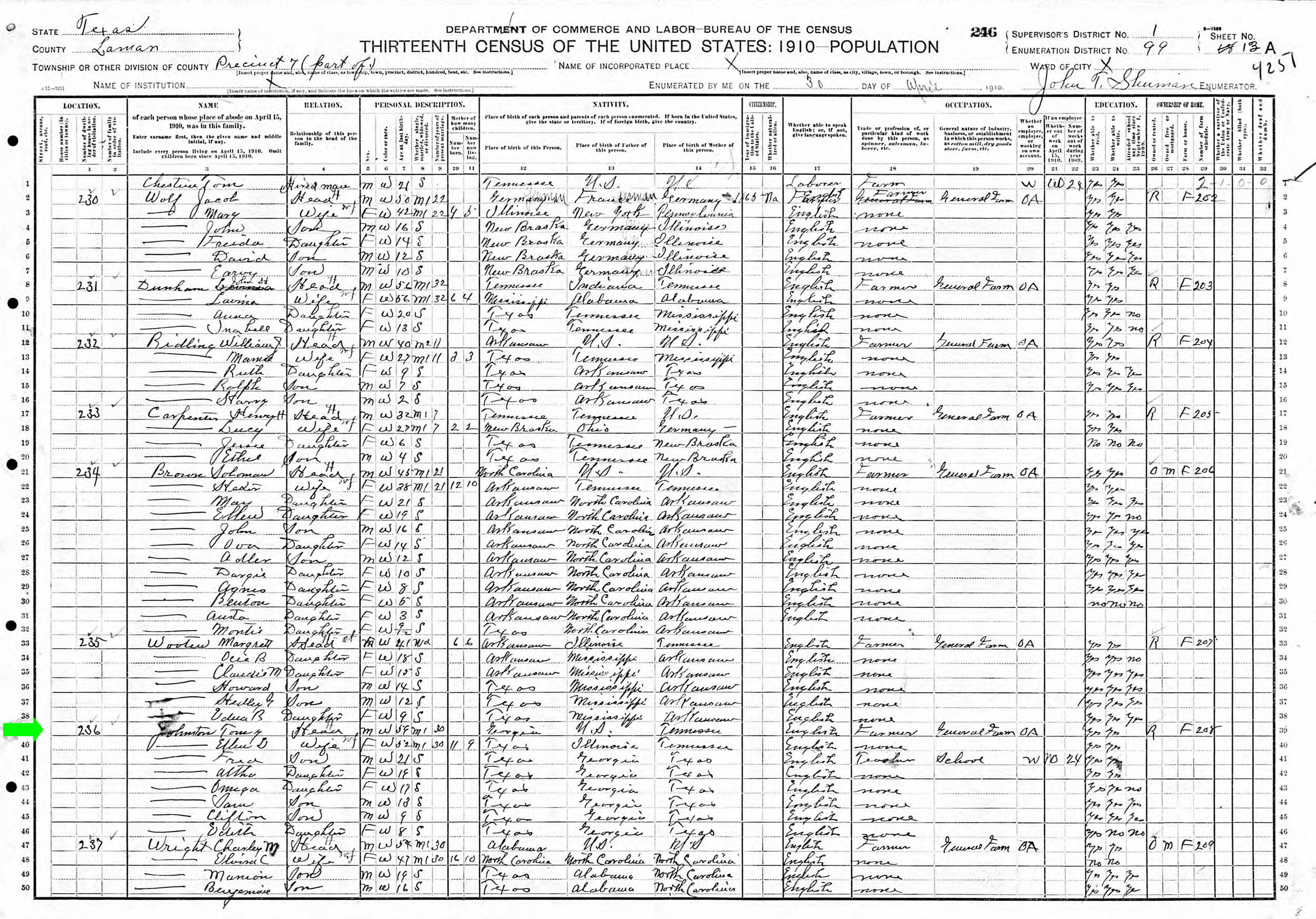 April 1910 in Lamar Co., Texas