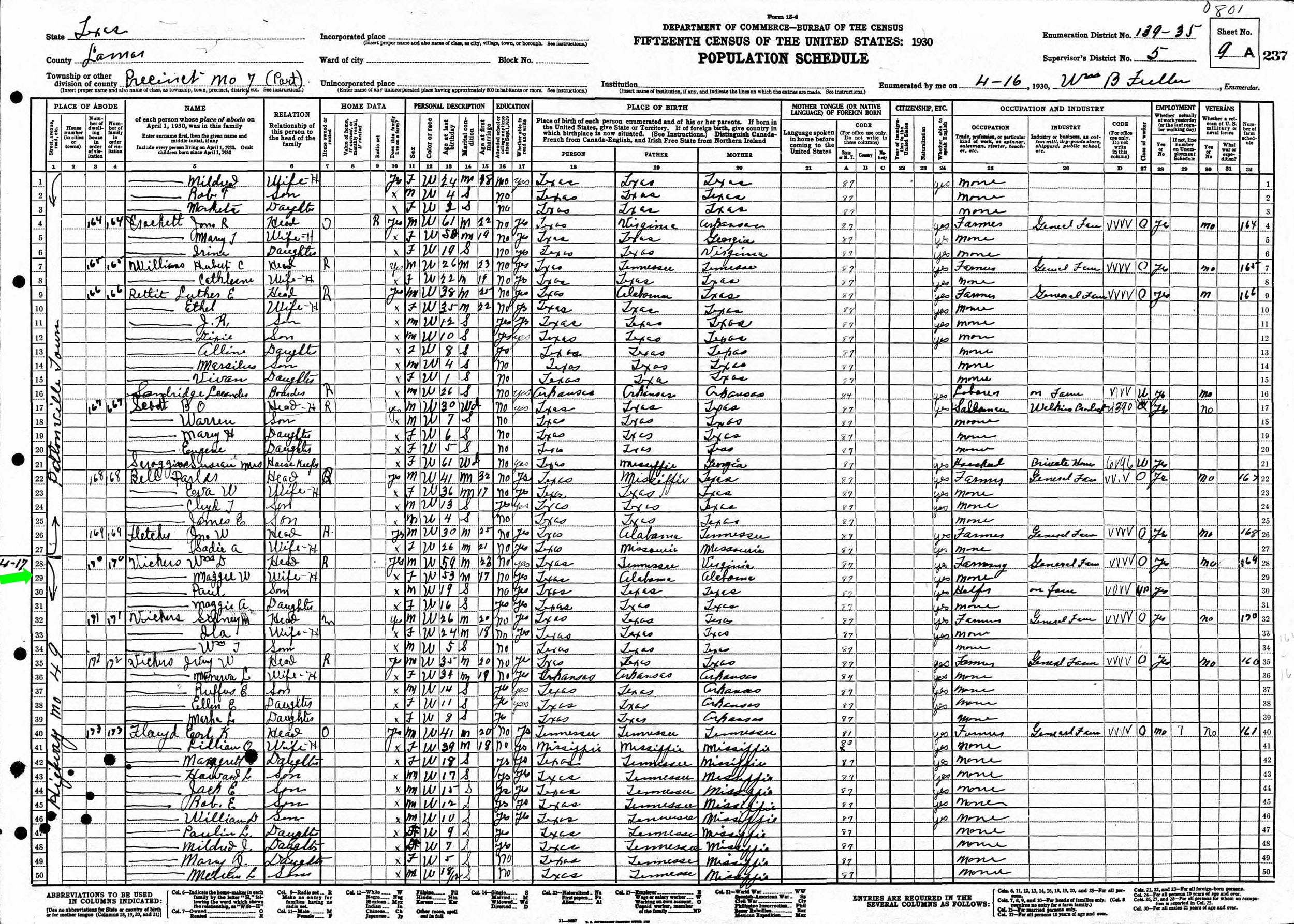 April 1930 in Lamar Co., Texas