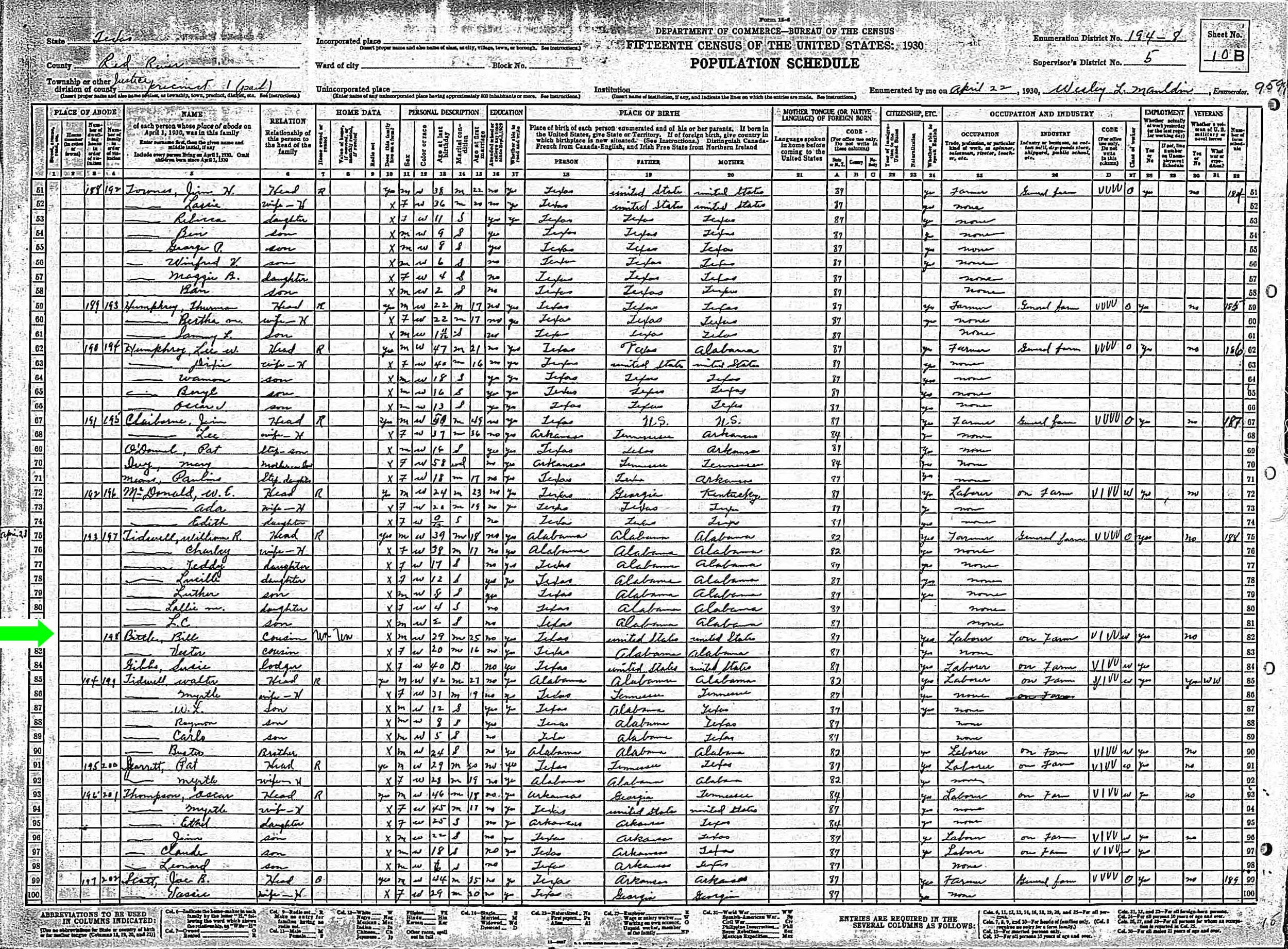 April 1930 in Red River Co., Texas
