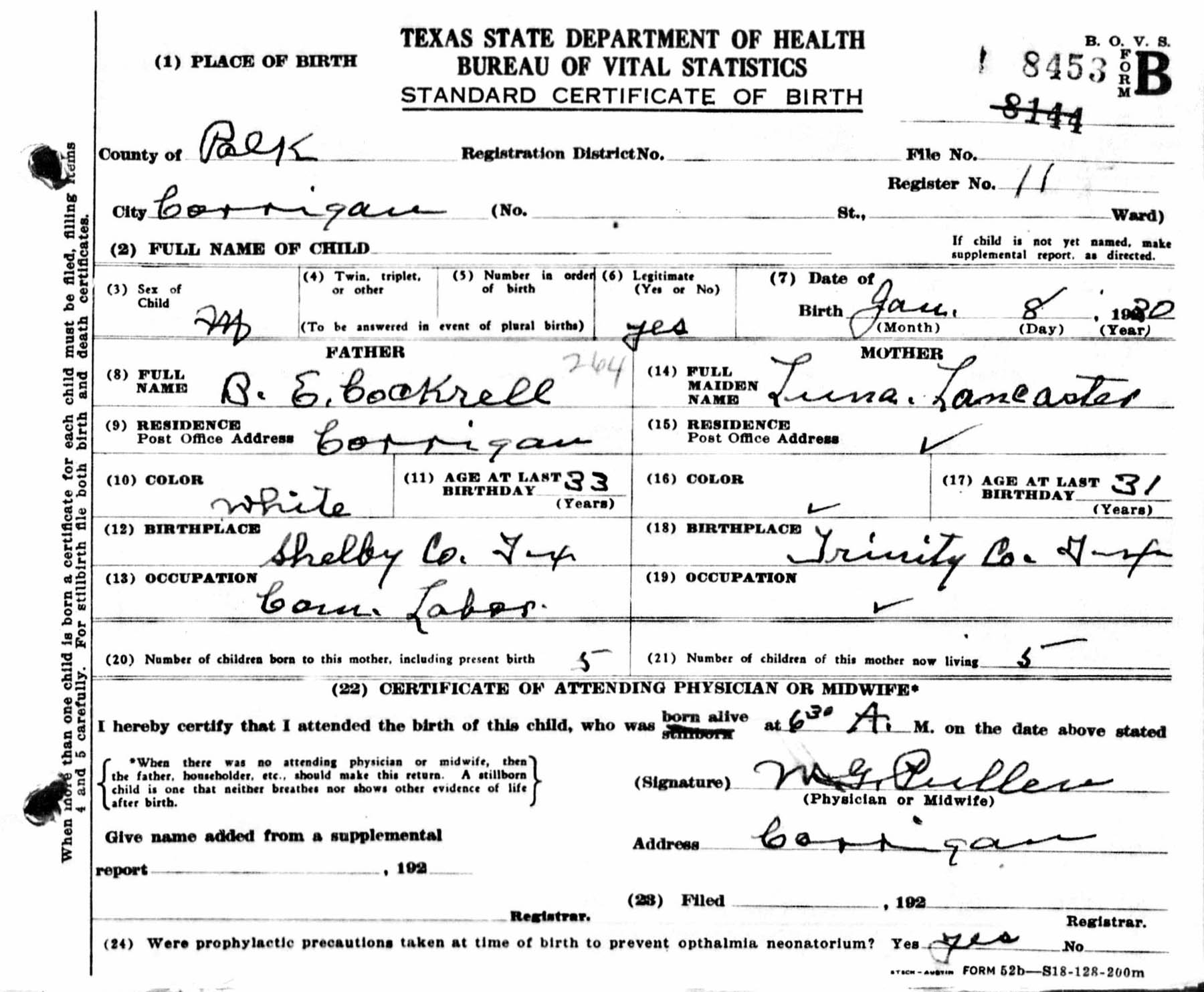 January 08, 1930 in Corrigan, Texas