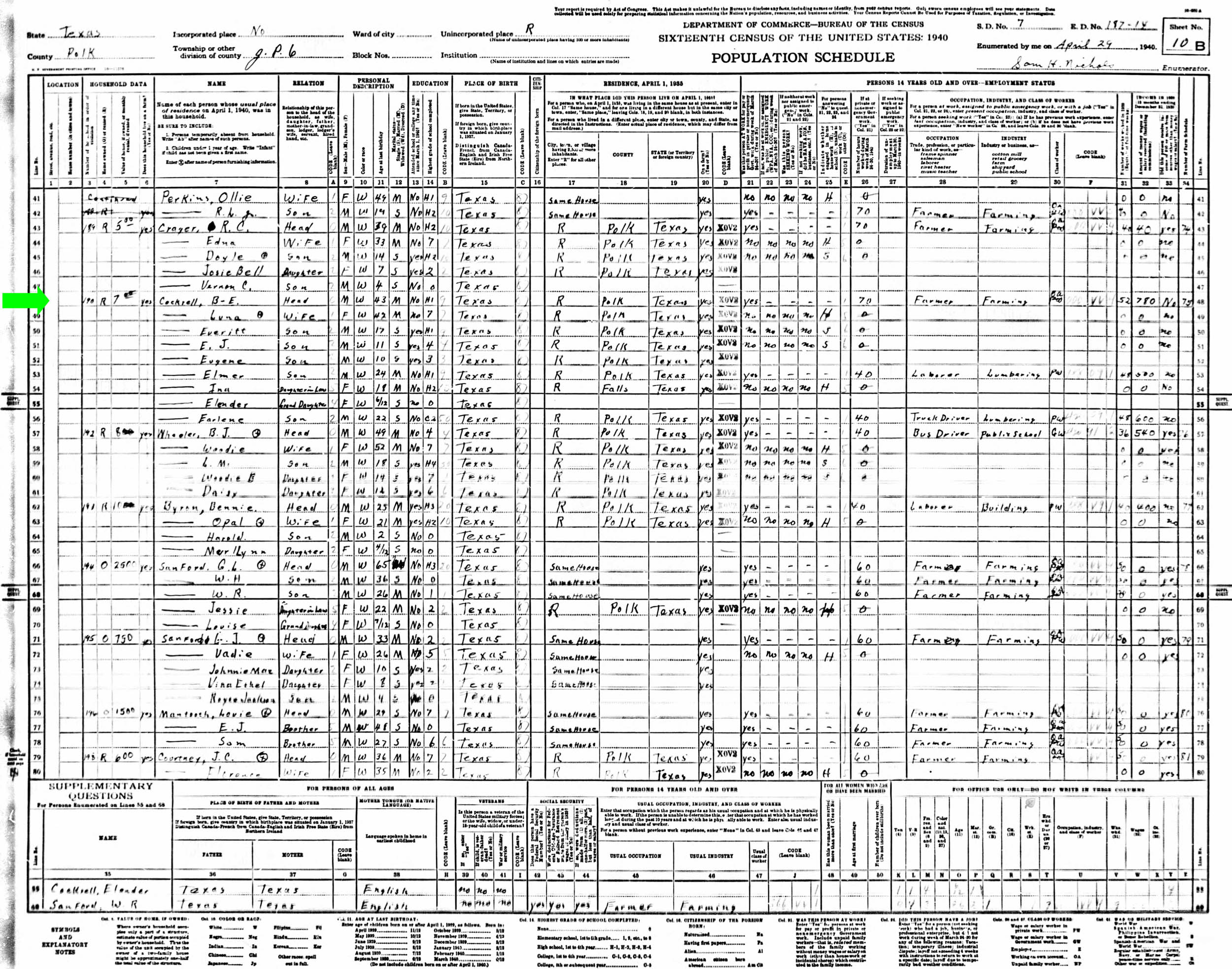 April 1940 in Polk Co., Texas