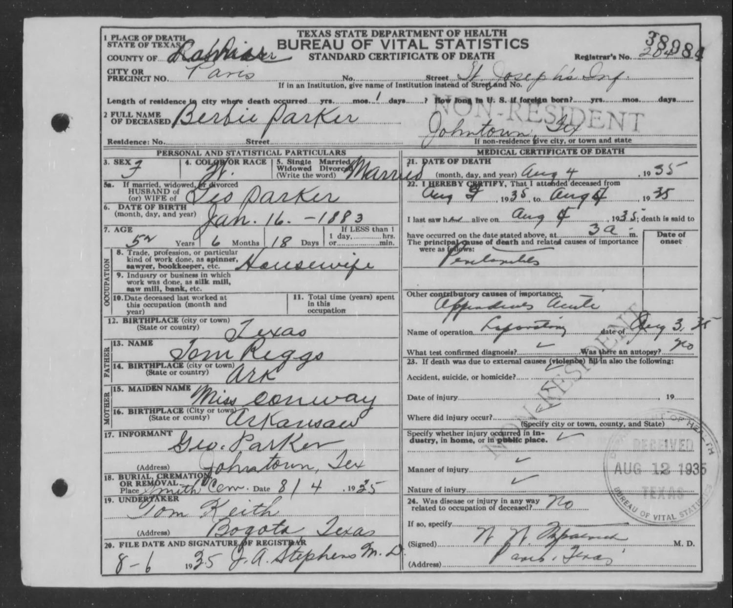 March 03, 1936 in Blossom, Texas; Blossom Cemetery