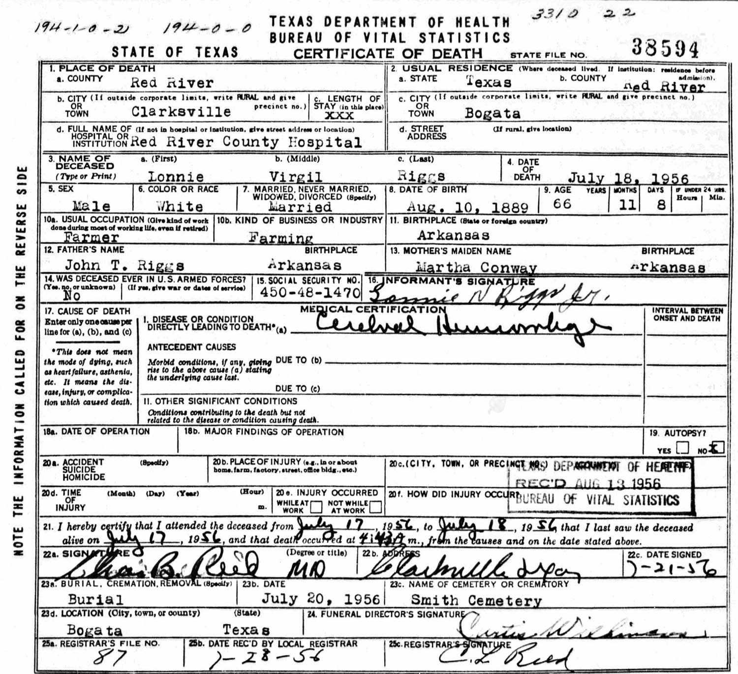 April 1910 in Garvinsville, Texas; Trent Road - The town does not exist anymore, it was 10 miles south of Clarksville.