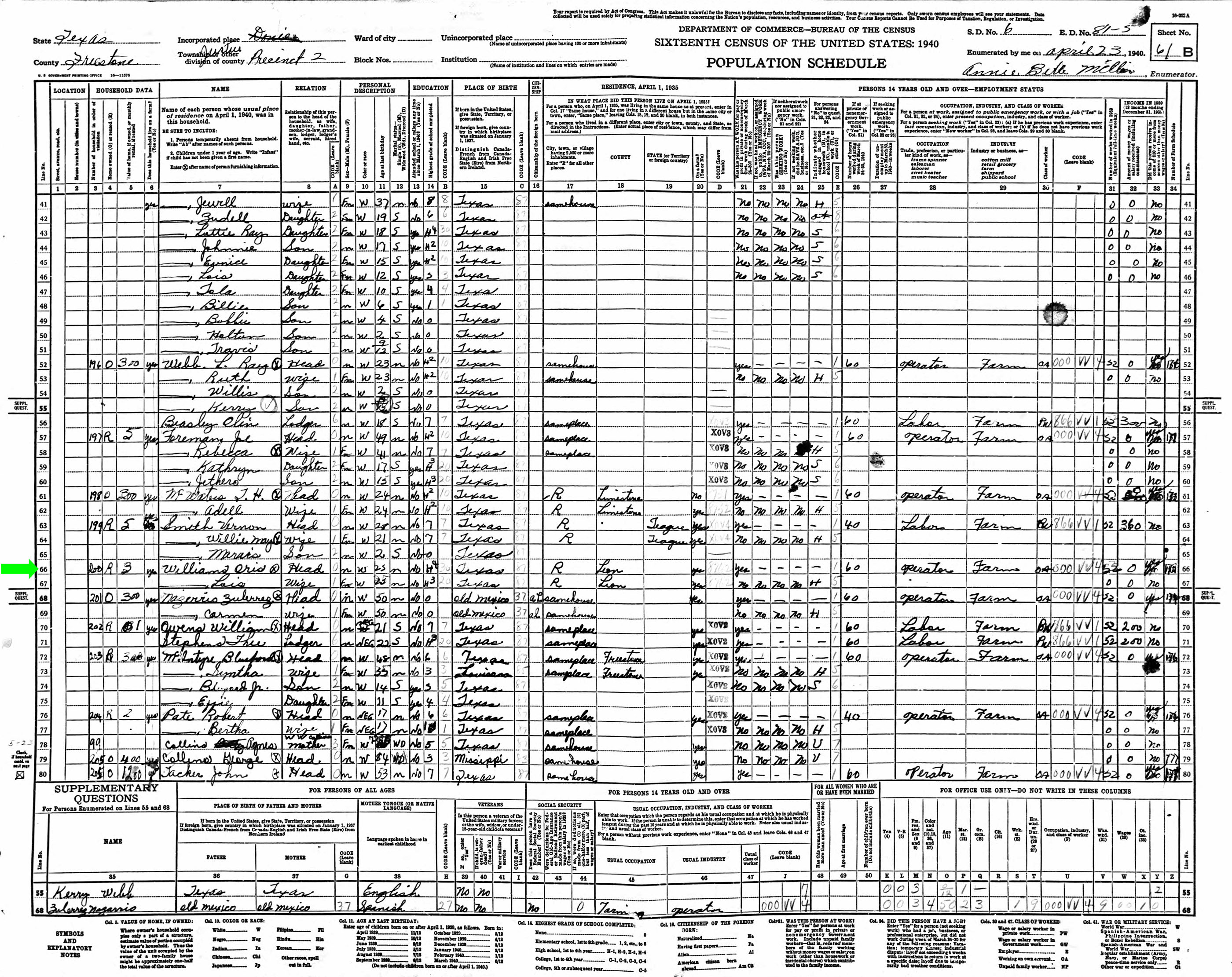 April 1940 in Freestone Co., Texas