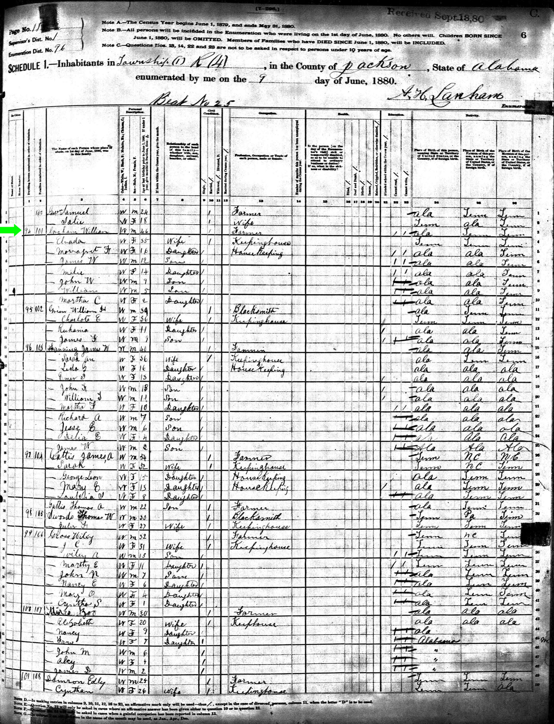 June 1880 in Jackson Co., Alabama
