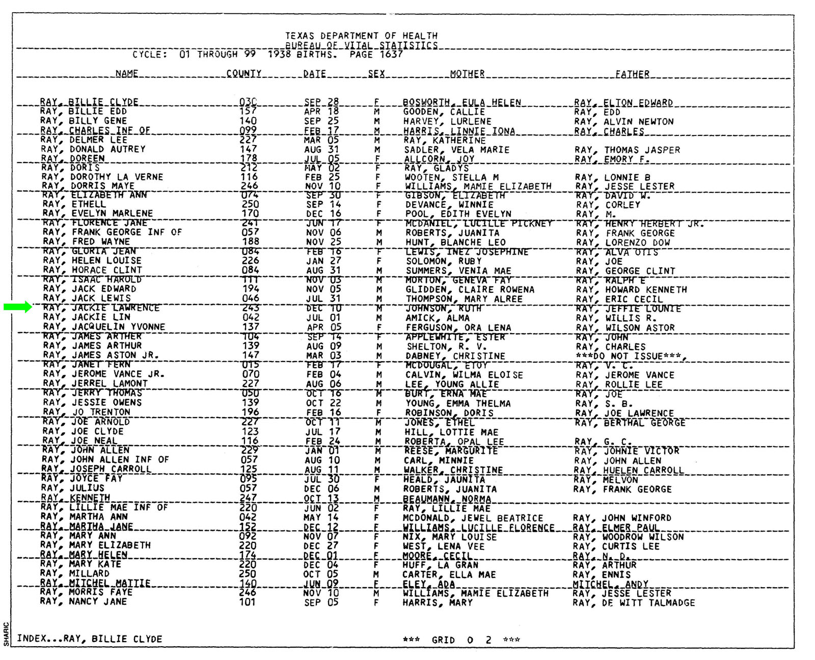 Married: August 15, 1958 in Goldsmith, Texas; Goldsmith Baptist Church