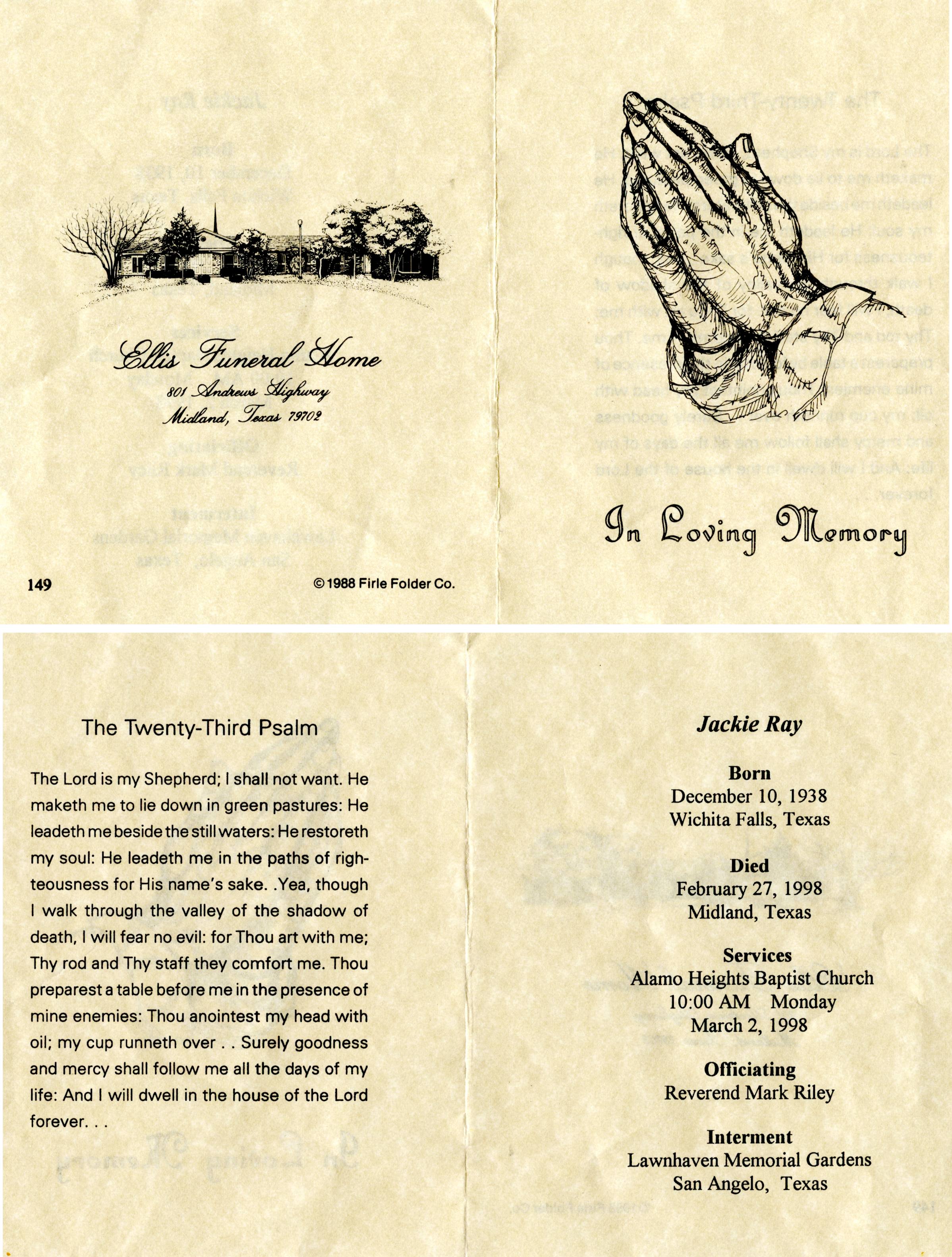 March 02, 1998 in San Angelo, Texas; Lawnhaven Memorial Gardens