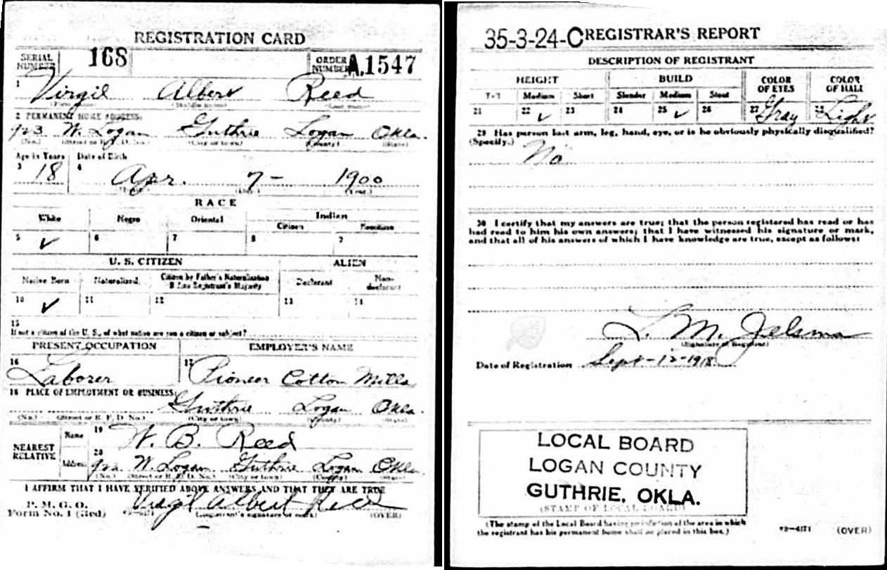 Sepember 1918 in Guthrie, Oklahoma; 923 W. Logan