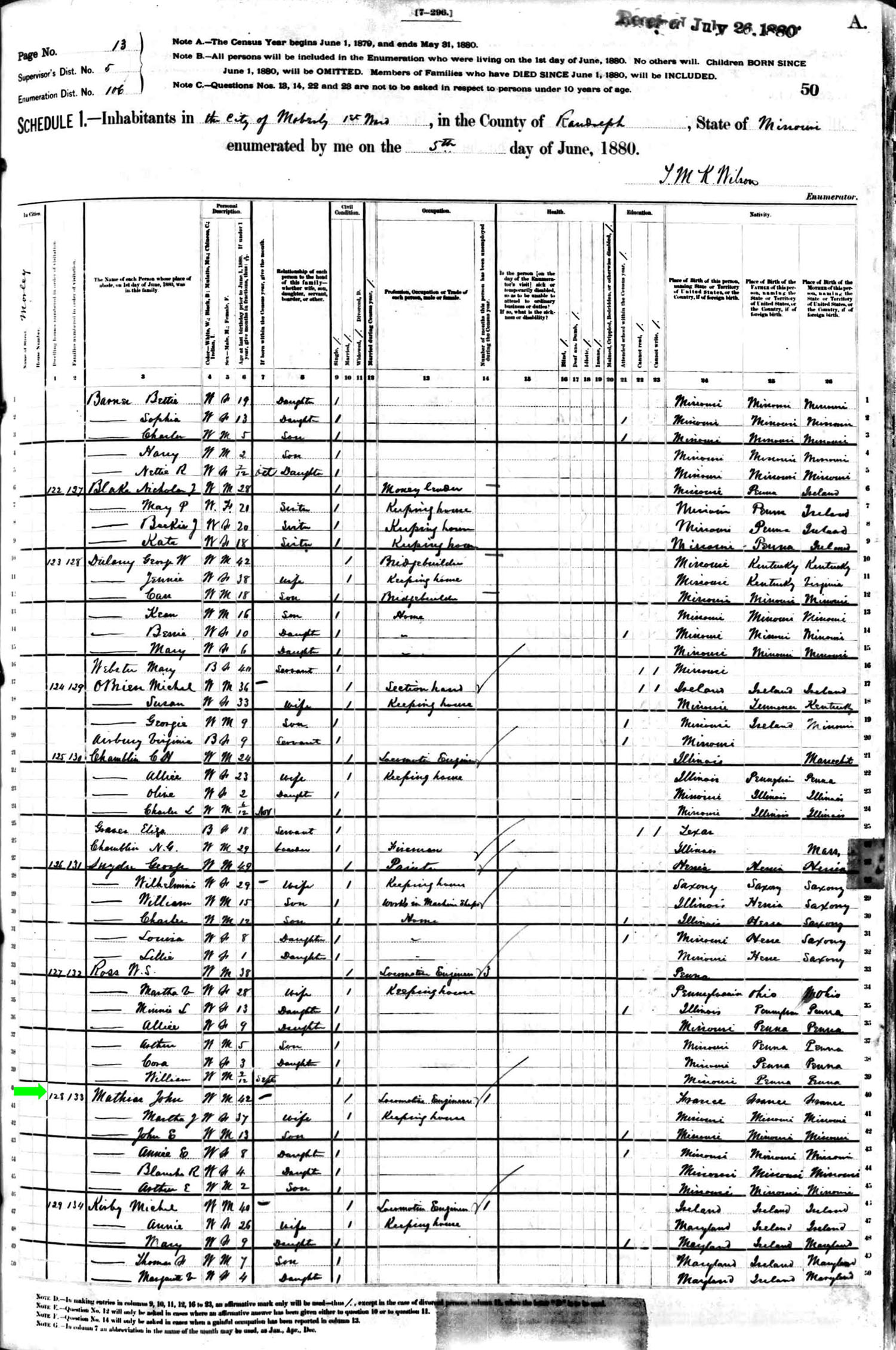 June 1880 in Moberly, Missouri