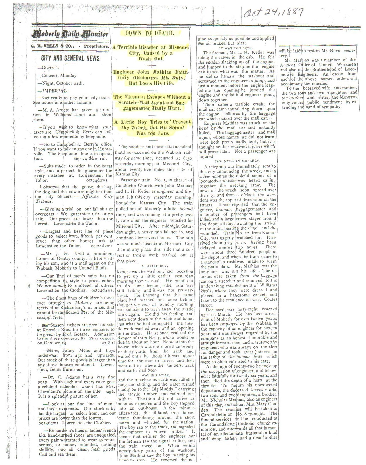October 1887 in Moberly, Missouri