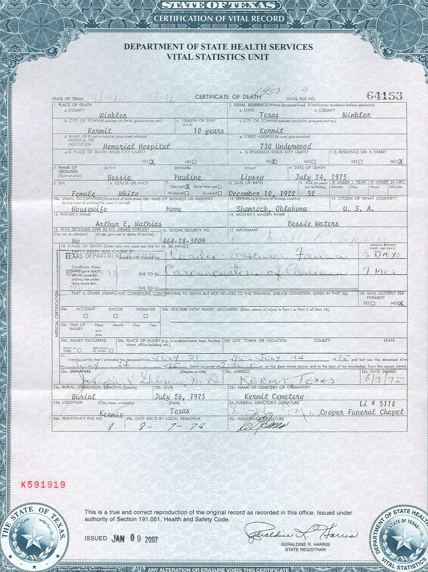 Bessie Pauline Mathias (1922 - 1975)