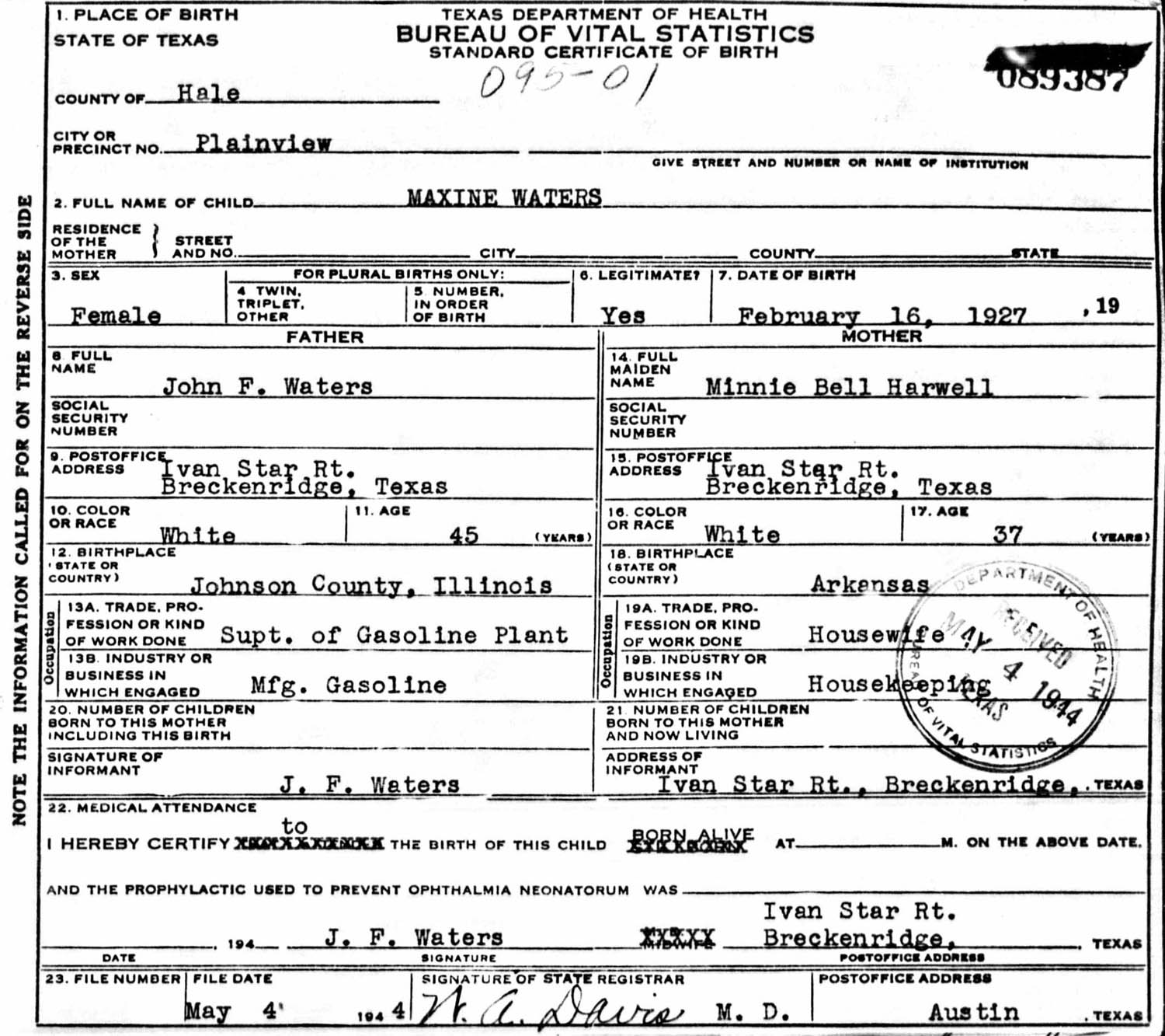 February 1927 in Breckenridge, Texas; Ivan Star Rt
