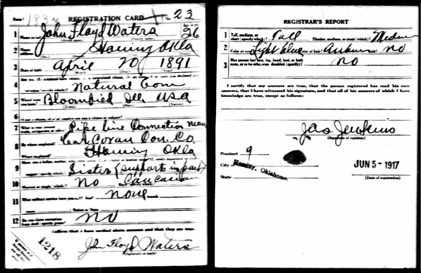 June 1917 in Hominy, Oklahoma; Pipe Line Connection Man