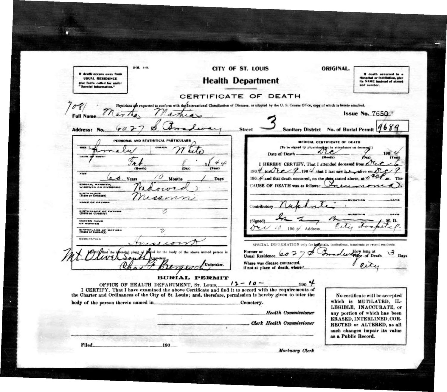 December 1904 in Lemay, Missouri; Mount Olive Catholic Cemetery