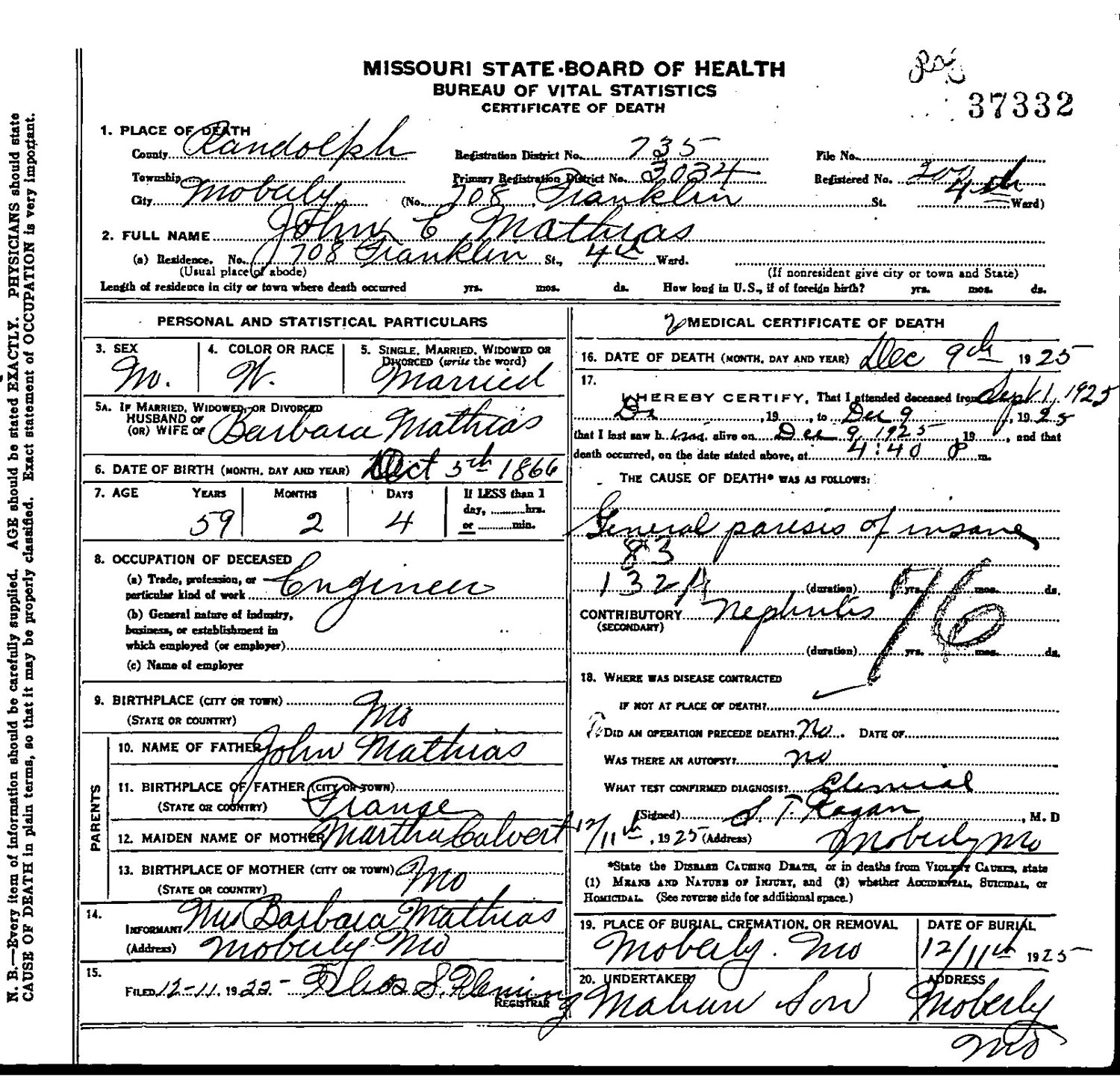 Married: November 02, 1863 in St Louis Co., Missouri; St. Mary''s and Joseph Catholic Church