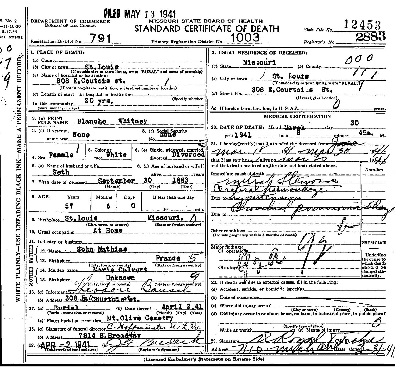 December 09, 1904 in St Louis, Missouri; City Hospital