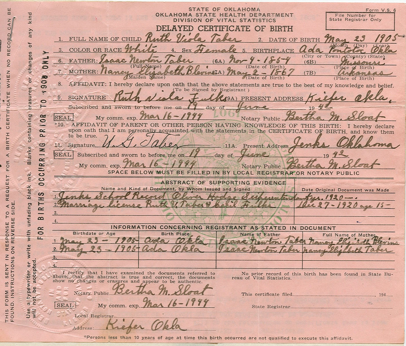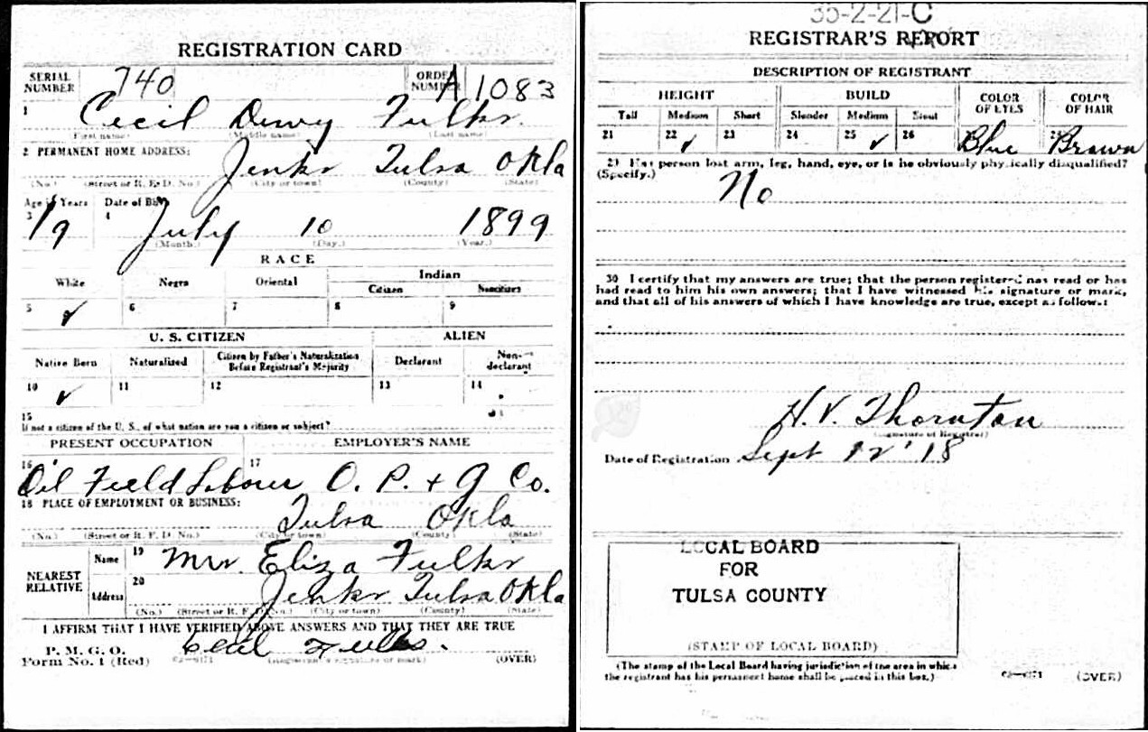 Married: December 27, 1920 in Tulsa, Oklahoma; Tulsa County Courthouse